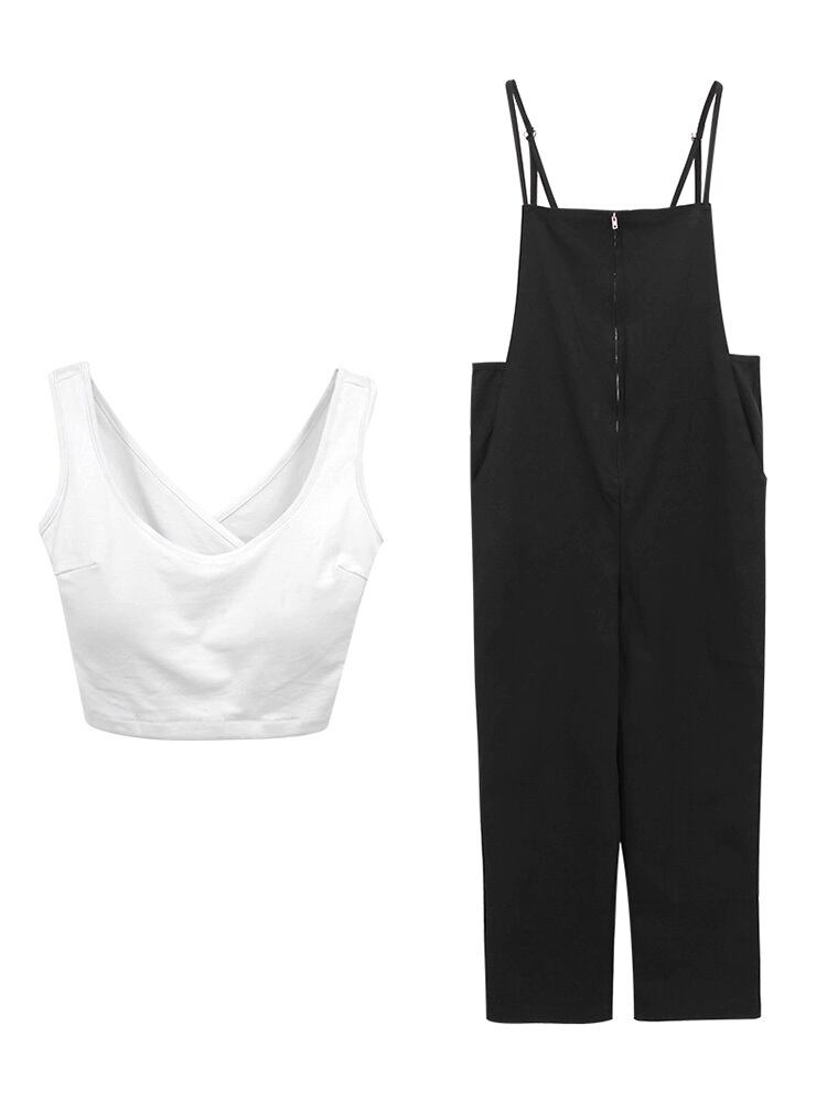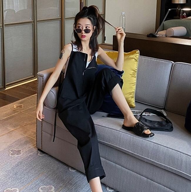 セットアップ ツーピース インナーセット サロペット サスペンダー タンクトップ オールインワン オーバーオール ゆったり クール アンクル丈 9分丈 ワイドレッグ カジュアル お出かけ 春 夏