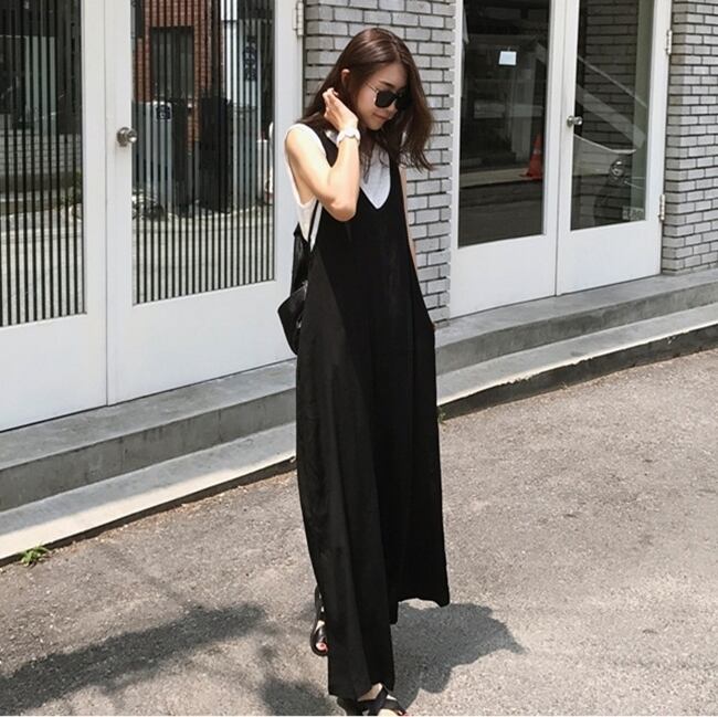 サロペット オールインワン オーバーオール ゆったり オーバーサイズ ワイドレッグ カジュアル デイリー シンプル お出かけ 大人 春 夏