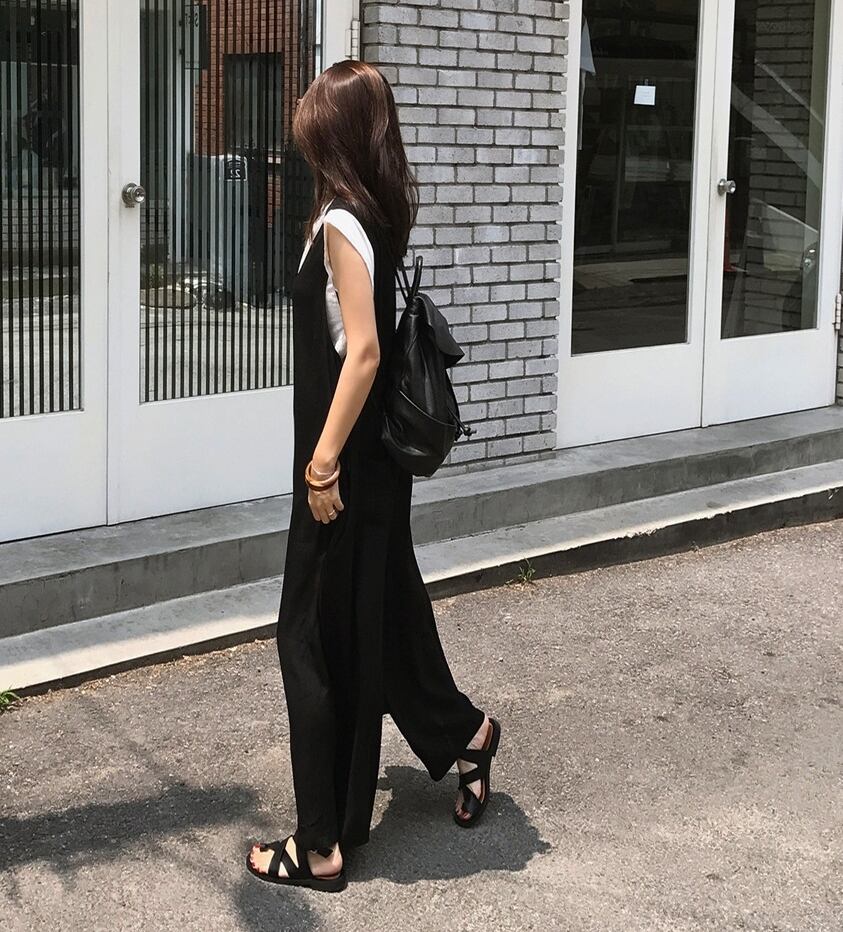 トレンドのオーバーサイズが大人の抜け感を演出するサロペット。