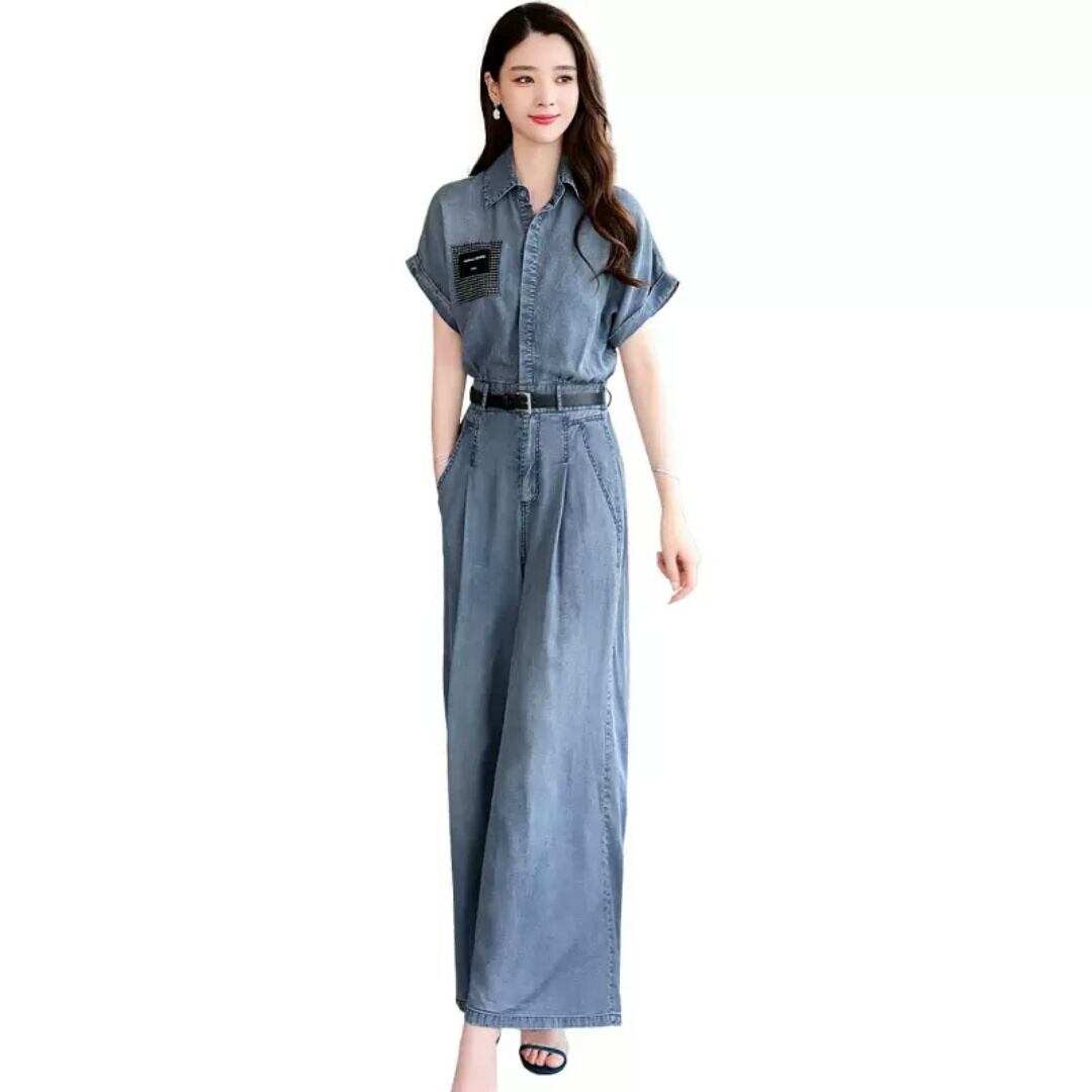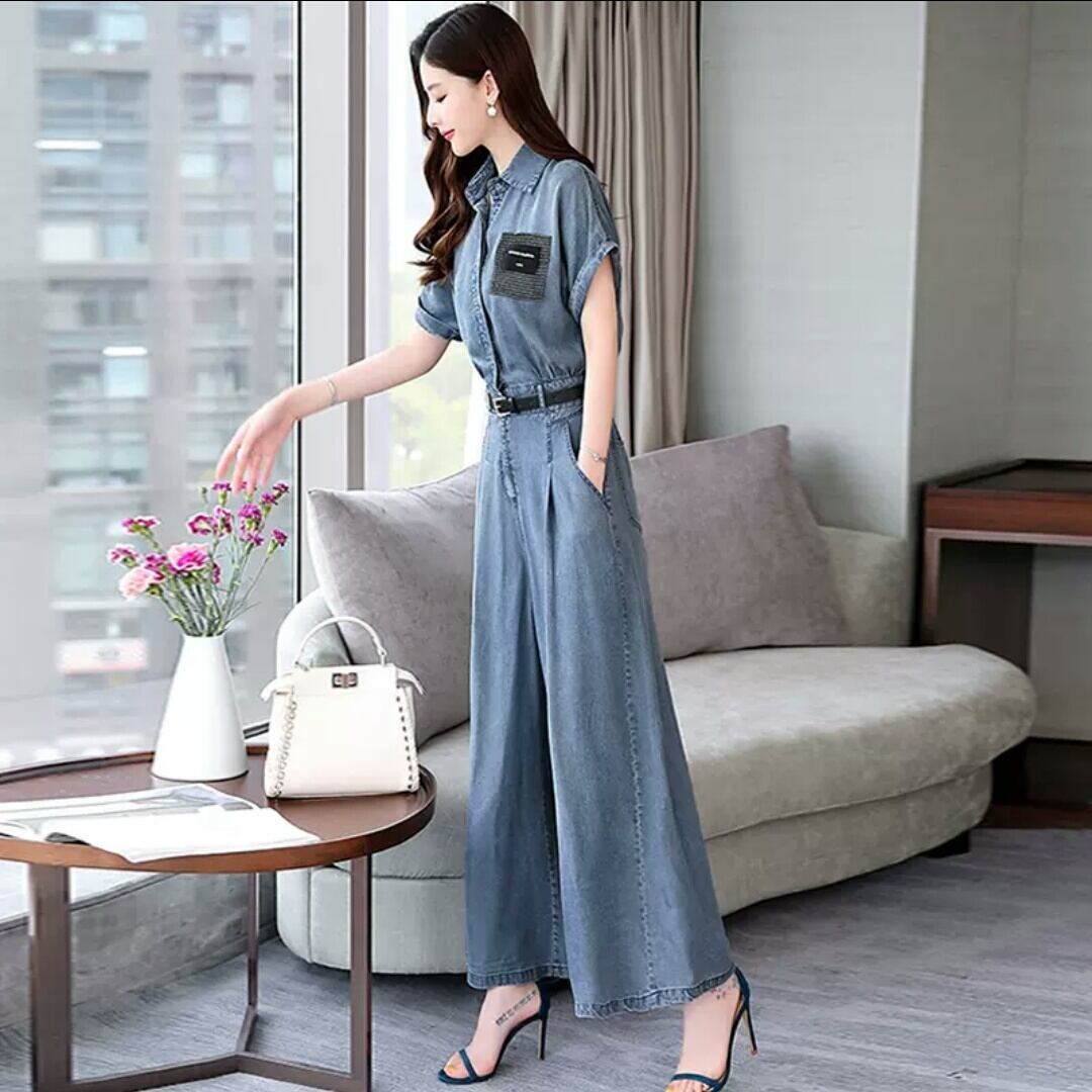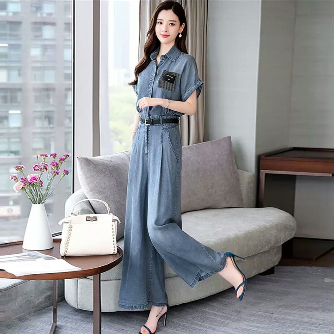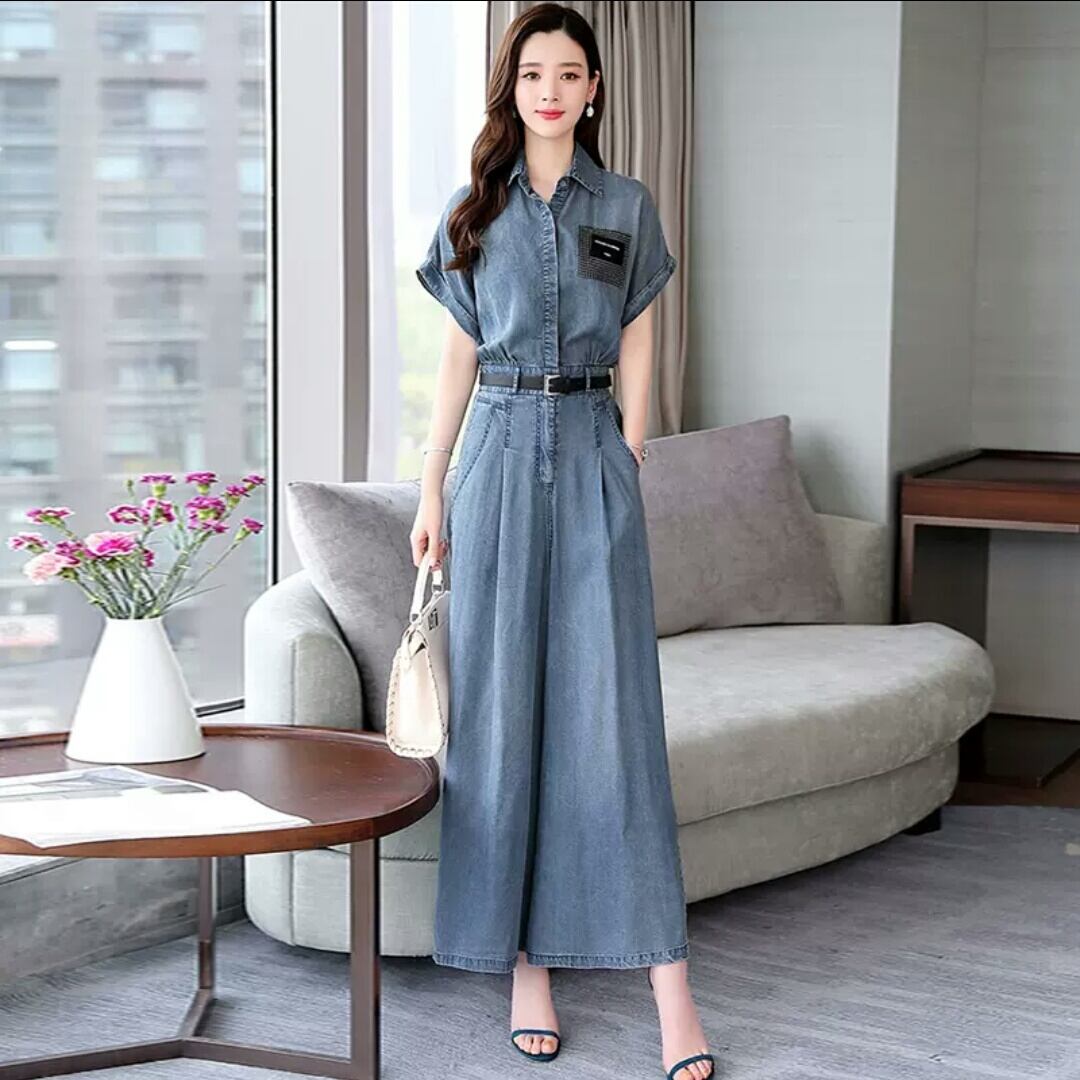 大きいサイズ デニム ジャンプスーツ オールインワン 半袖 ワイドレッグ 大人 カジュアル 可愛い キレイめ スタイリッシュ お出かけ お買い物 デート 女子会 通勤 通学 学生 韓国ファッション 春 夏