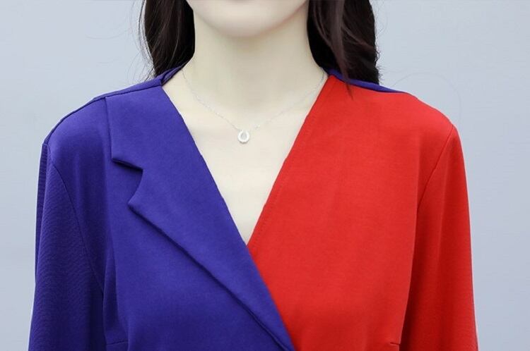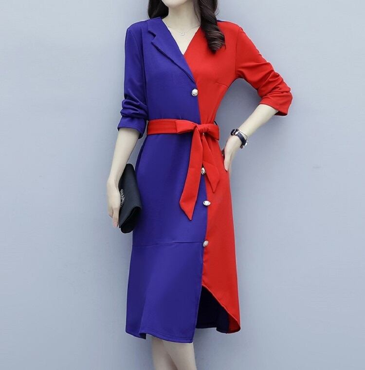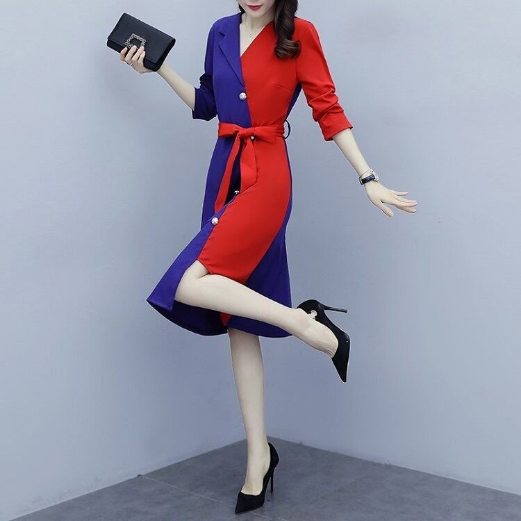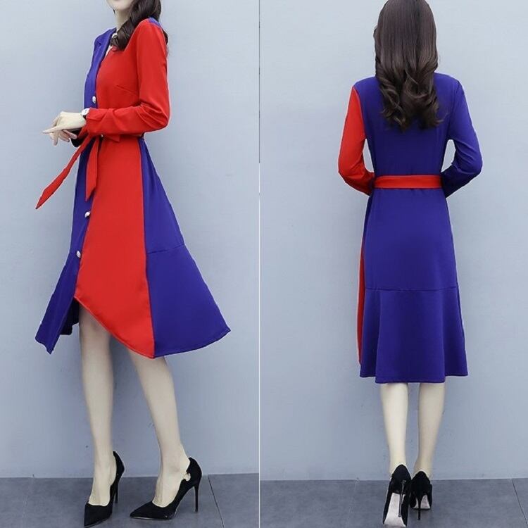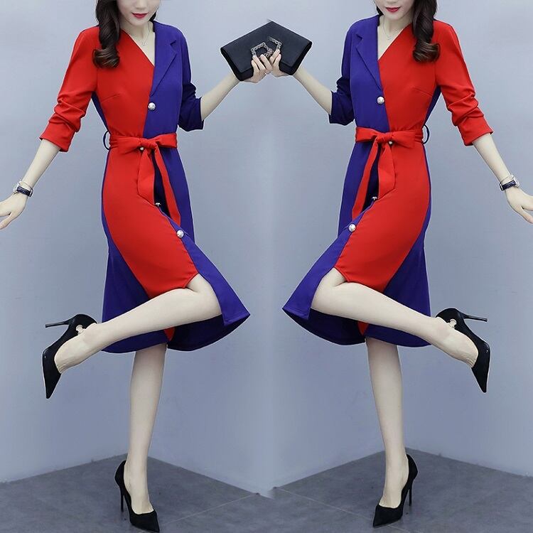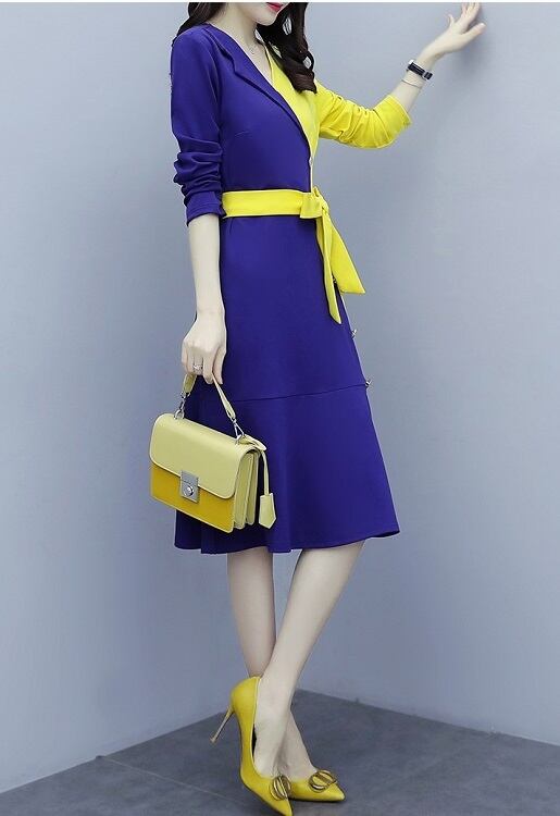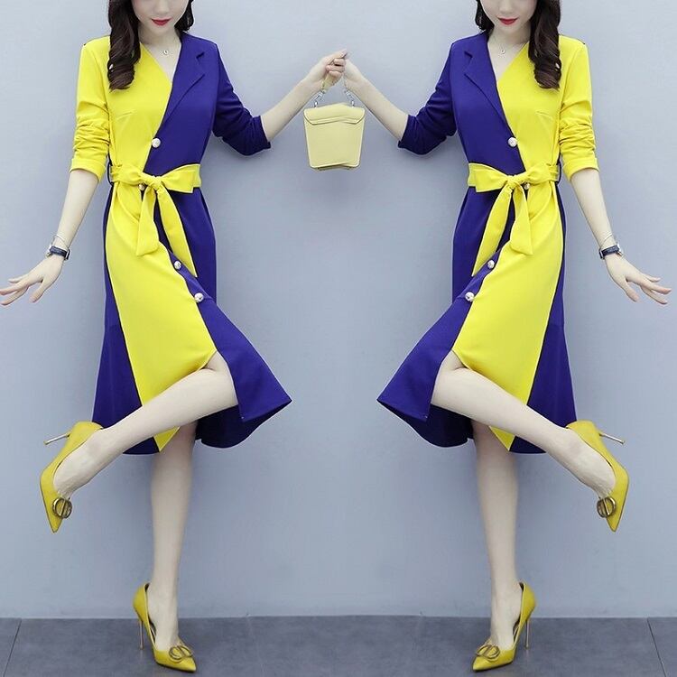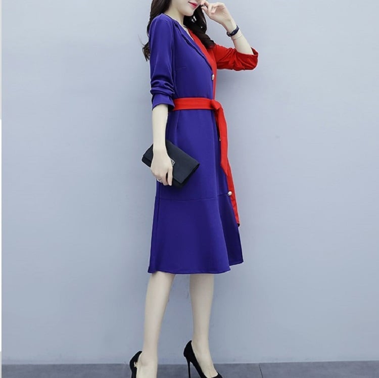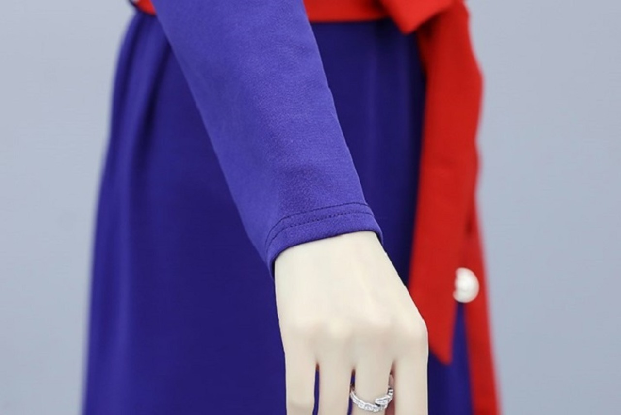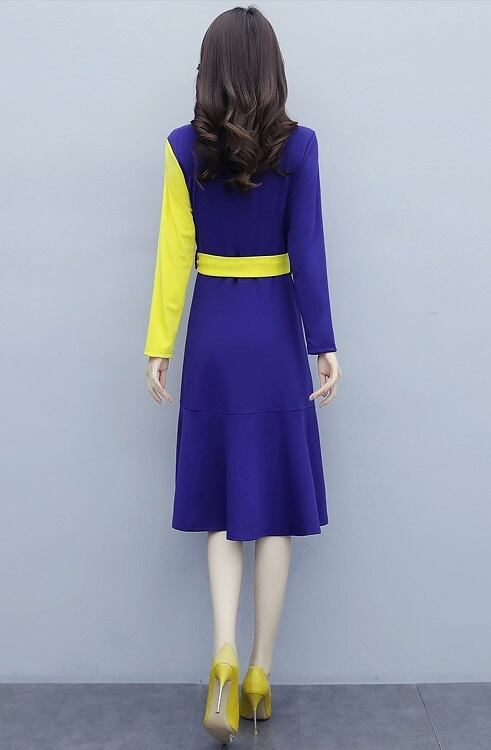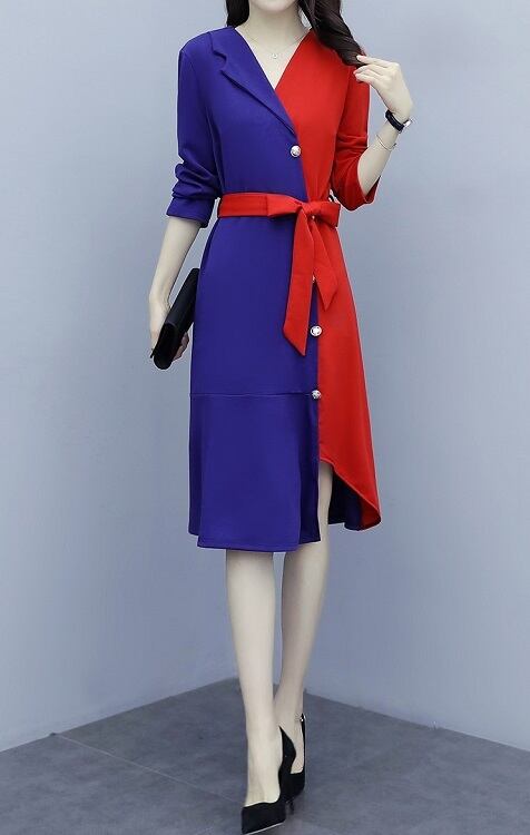 鮮やかな配色が目を引く上品なミディ丈ワンピース。