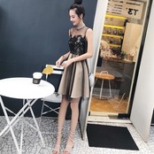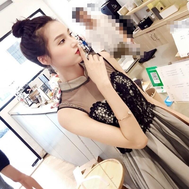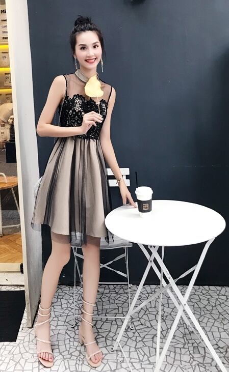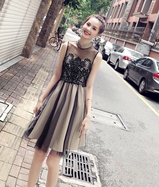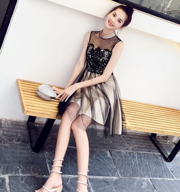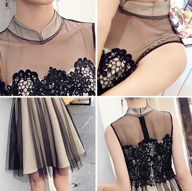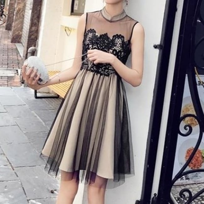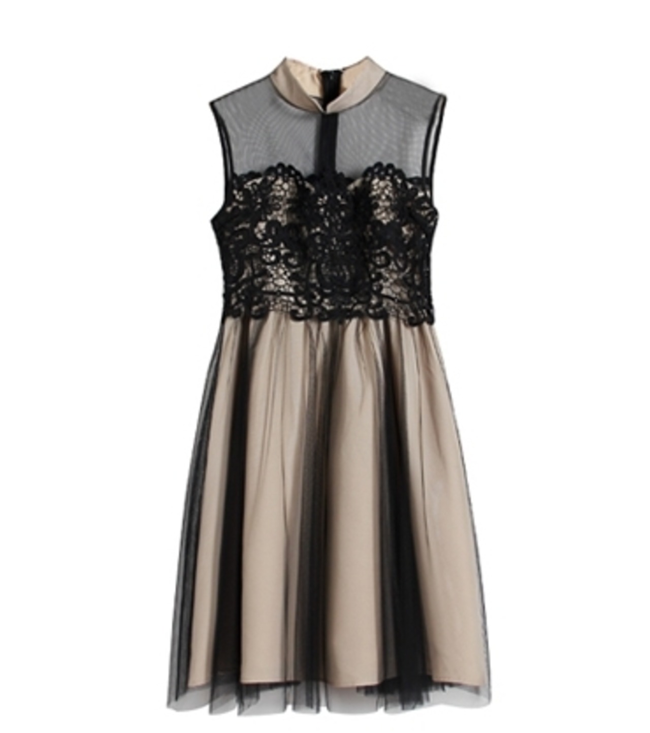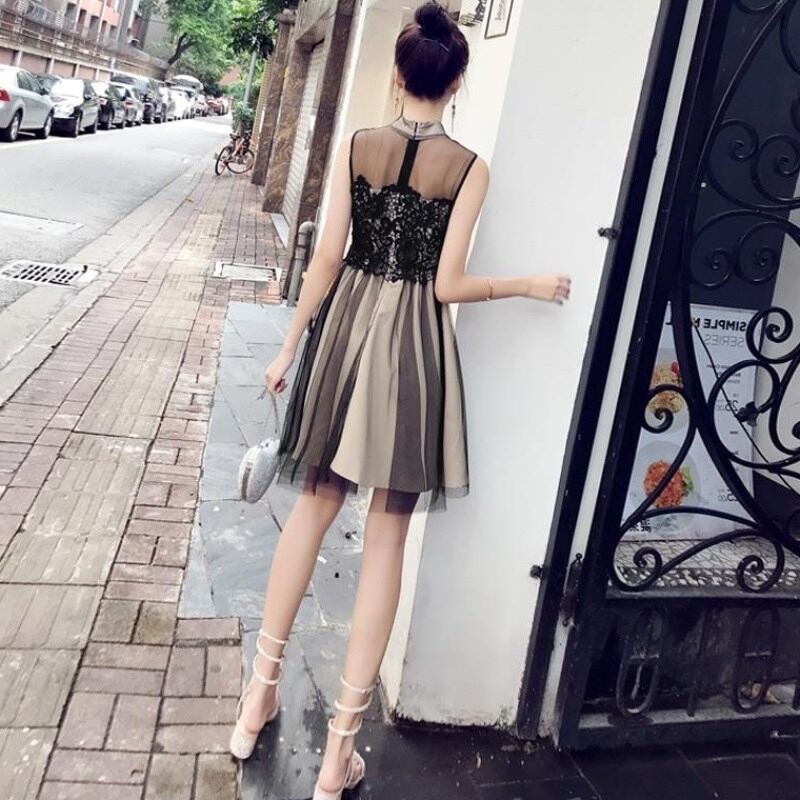 ワンピース ドレス レース チュール ハイウエスト シースルー ノースリーブ ショート丈 フレア Aライン きれいめ 上品 エレガント お呼ばれ ナイト パーティー 春 夏