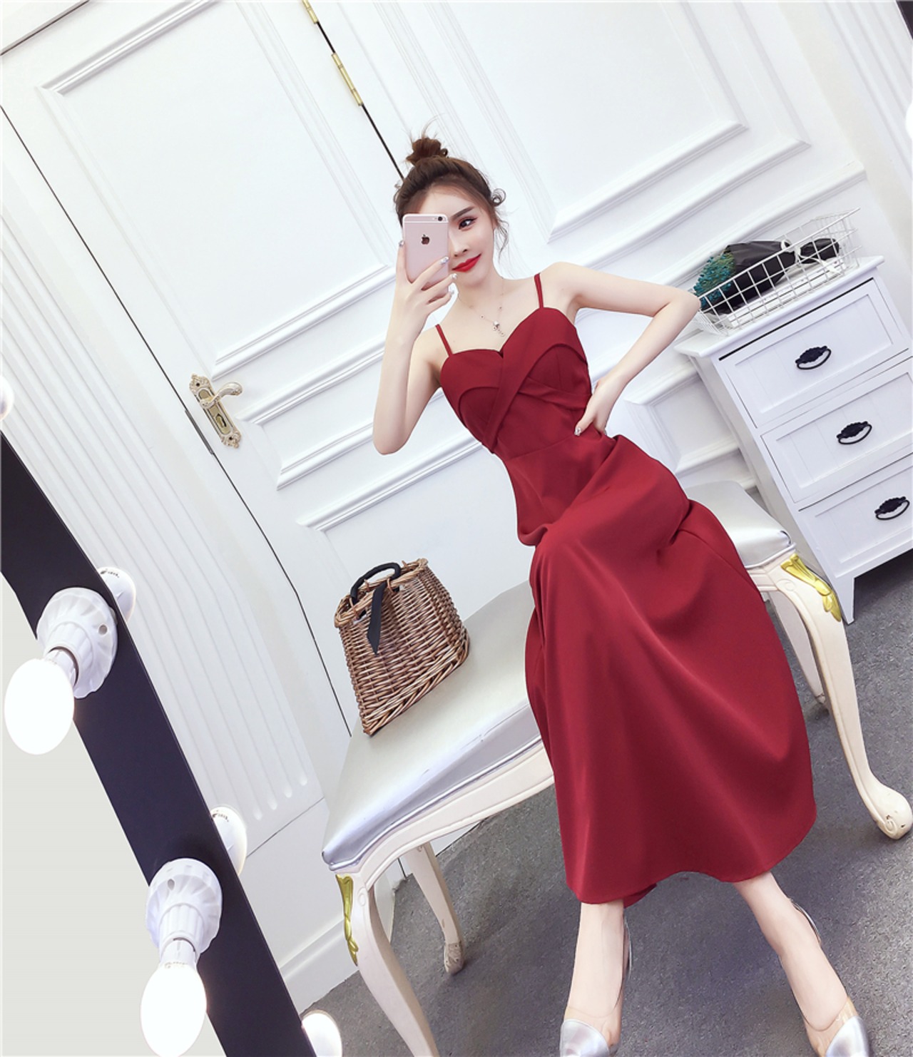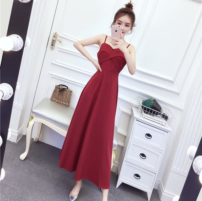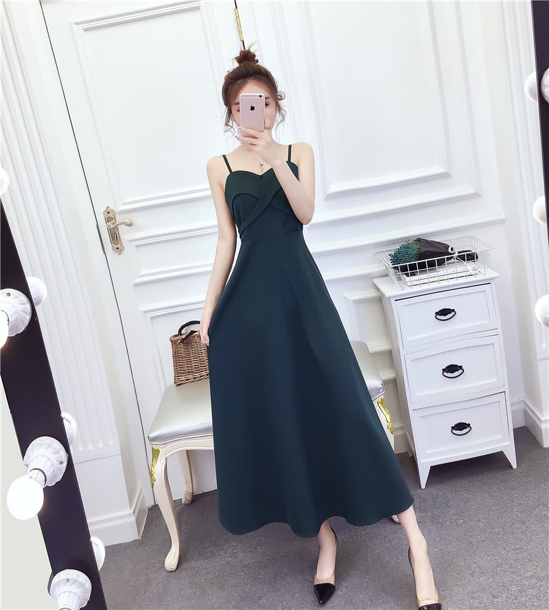 全3色ドレス ワンピース ロング丈 キャミドレス スリム 上品 エレガント 無地 フレア お呼ばれ オケージョン 結婚式 ナイト パーティー 春 夏