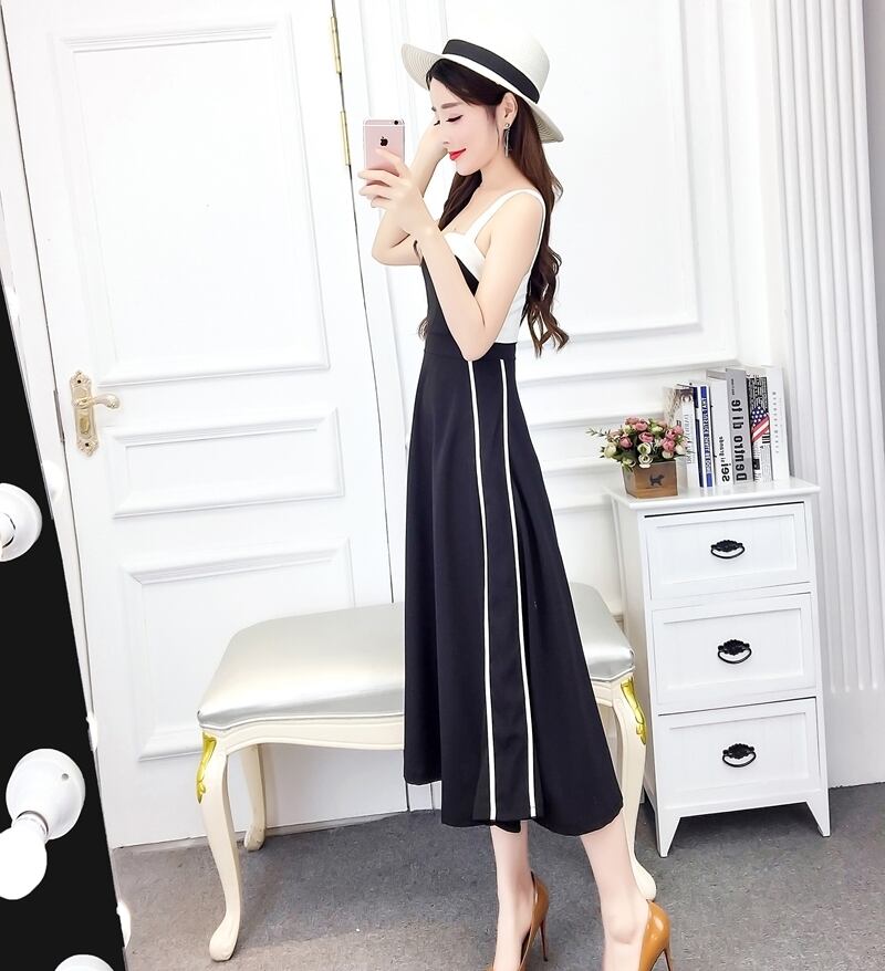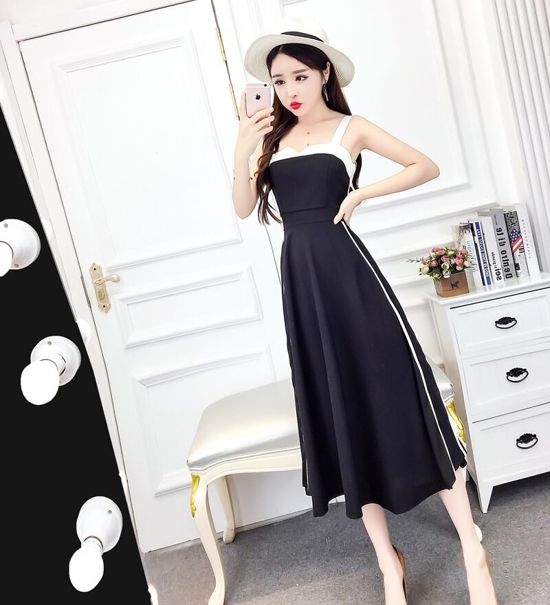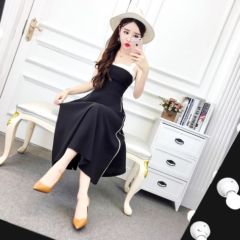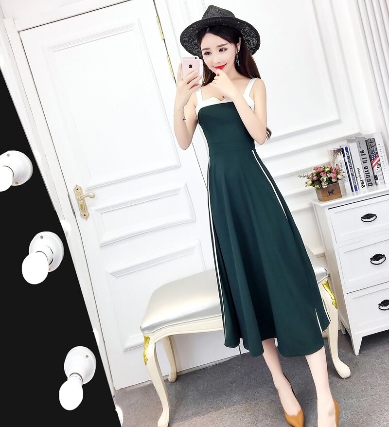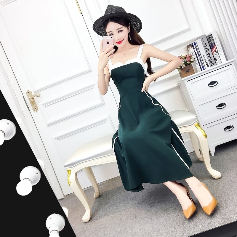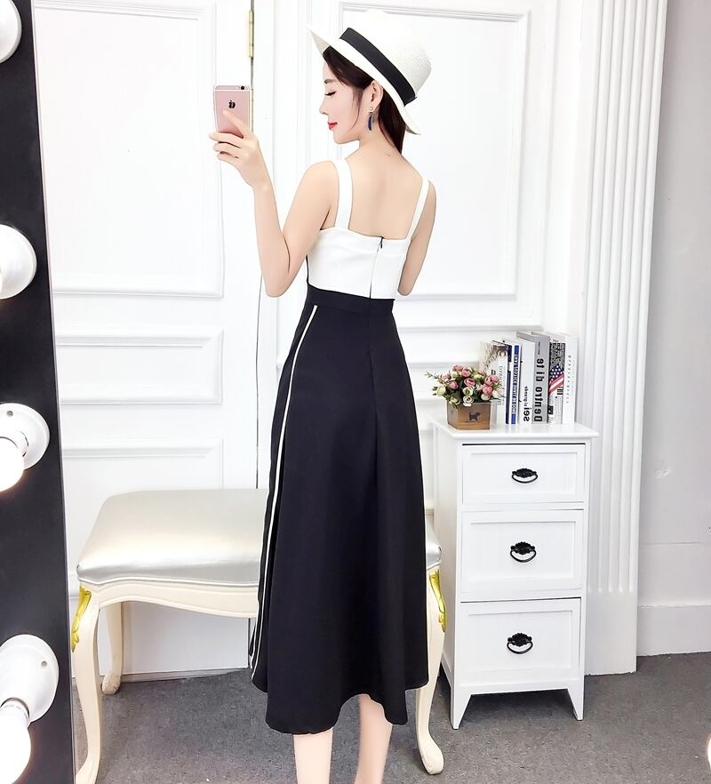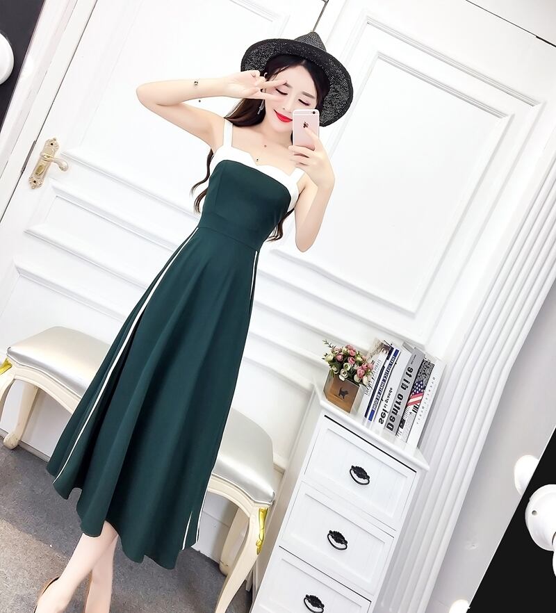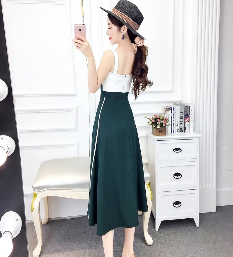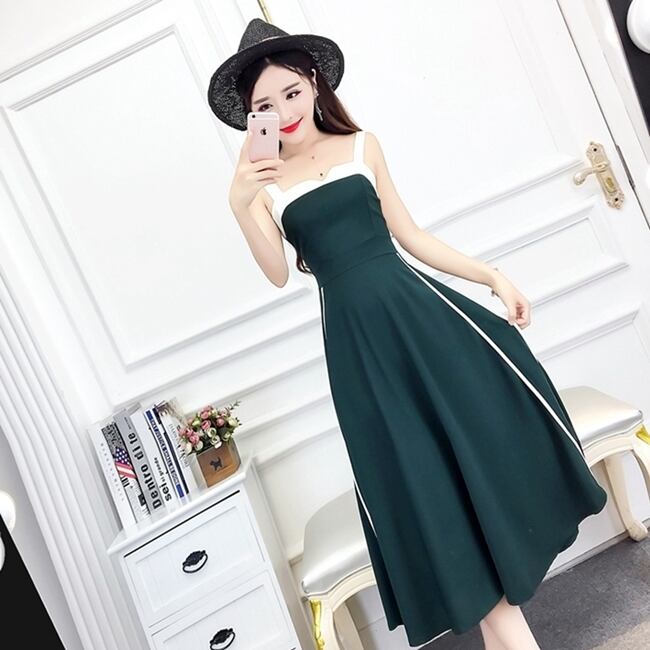全2色 ワンピース ドレス ミモレ丈 バイカラー サイドライン フレア スリム スクエアネック カジュアル キャミソールワンピ 上品 エレガント パーティー ナイト デート 女子会 春 夏