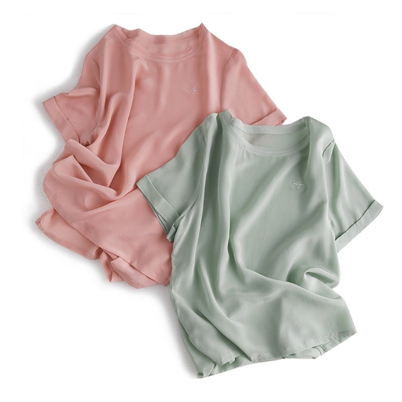 柔らかいシルク生地が着心地の良い半袖Tシャツ。