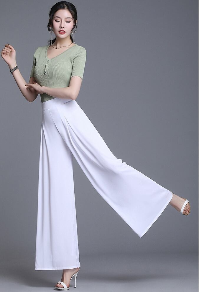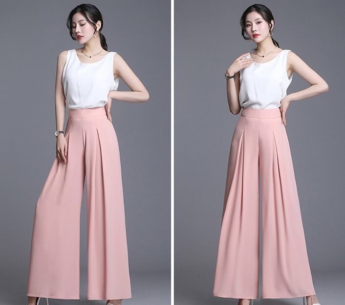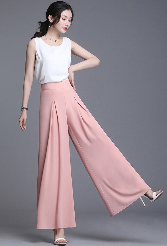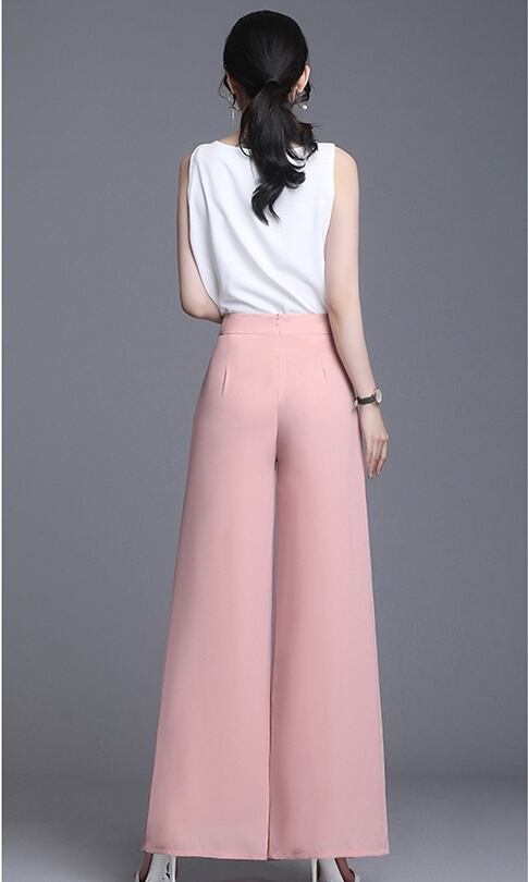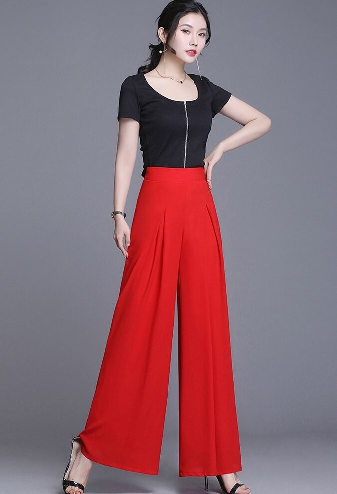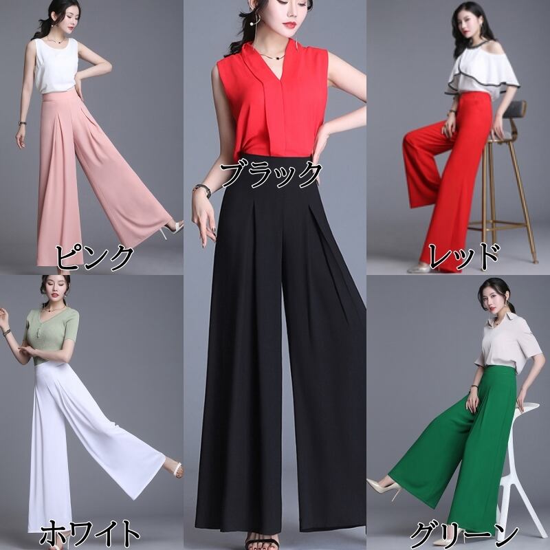 全5色 ワイドパンツ ロング丈 タック ハイウエスト 無地 シフォン 春夏 涼しい 通勤着 オフィスカジュアル きれいめ 大人可愛い エレガント 脚長効果 スタイルアップ