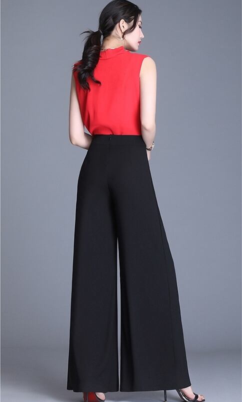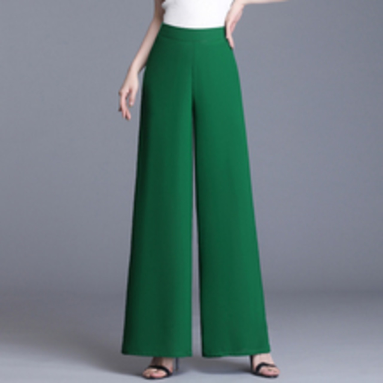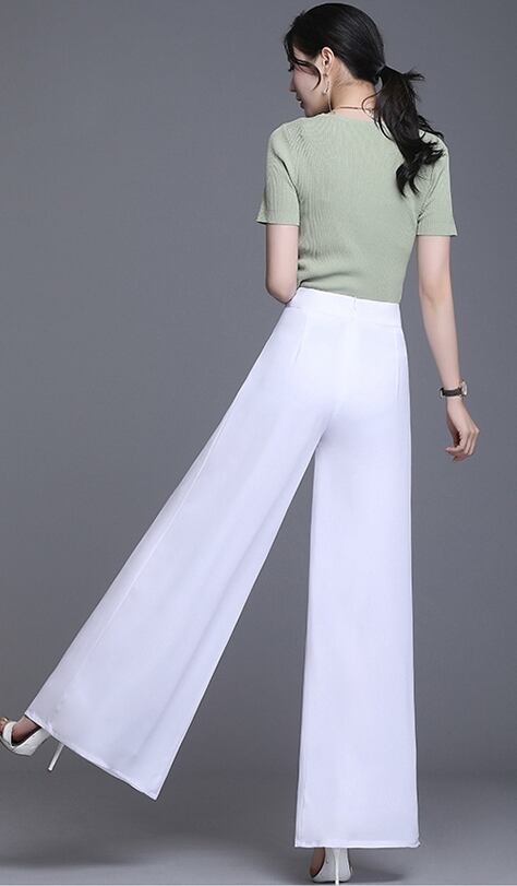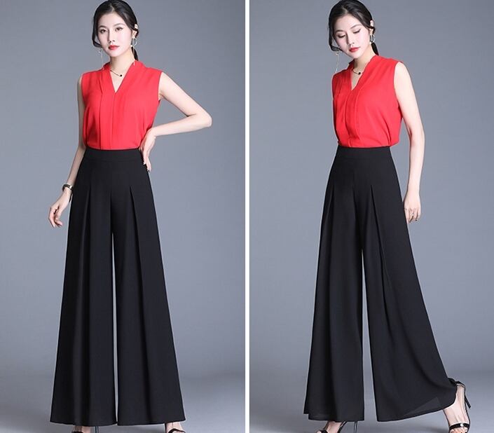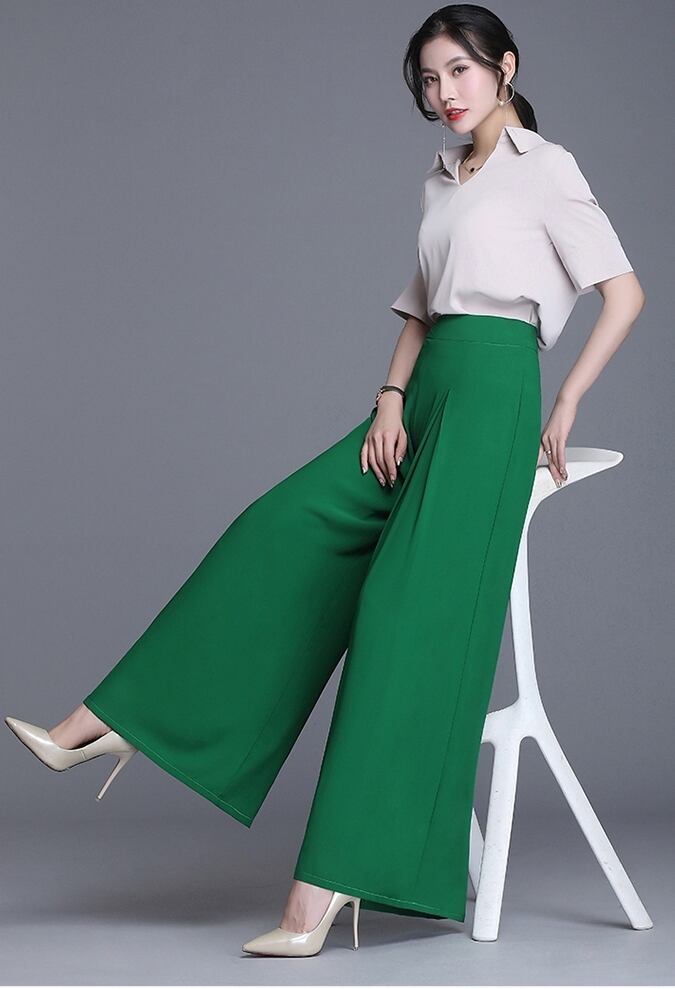 全5色 ワイドパンツ ロング丈 タック ハイウエスト 無地 シフォン 春夏 涼しい 通勤着 オフィスカジュアル きれいめ 大人可愛い エレガント 脚長効果 スタイルアップ