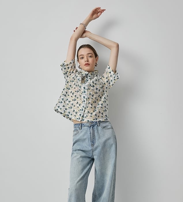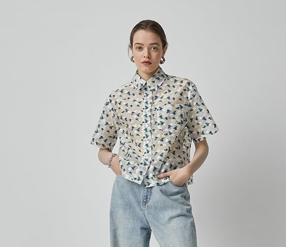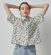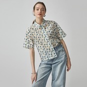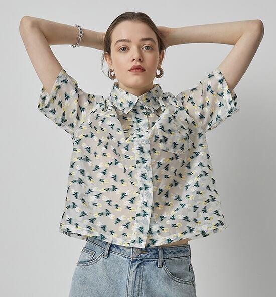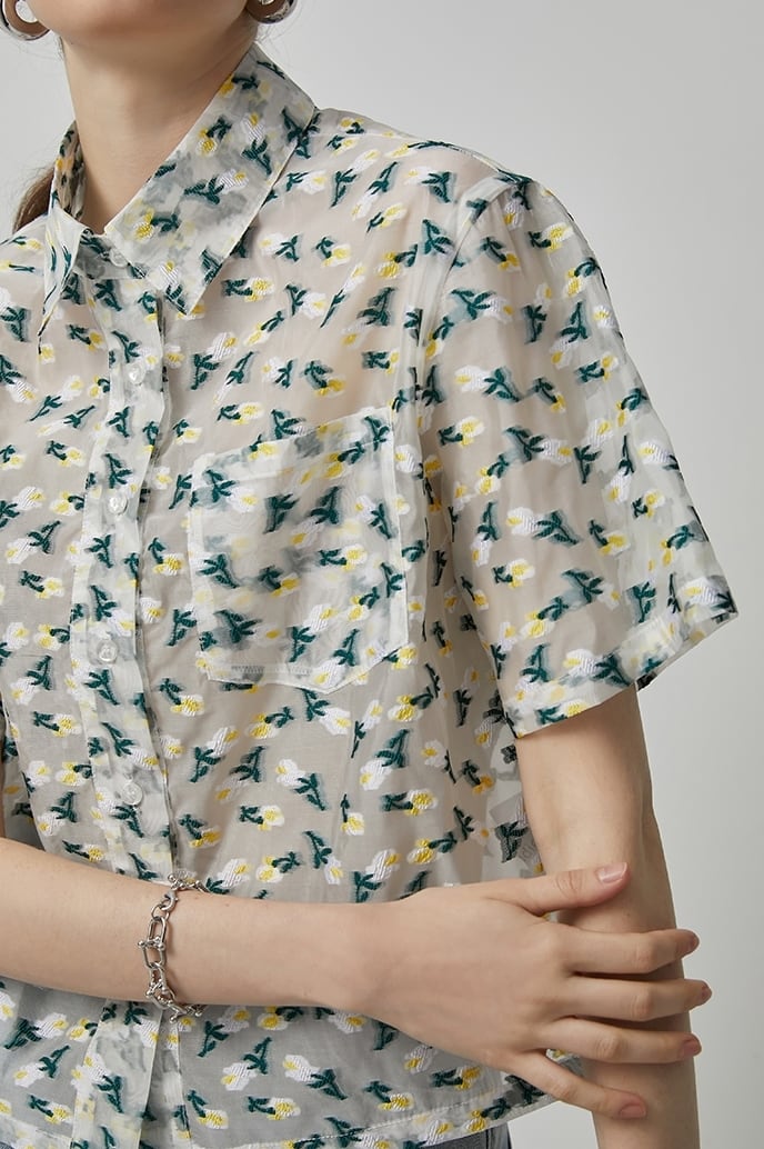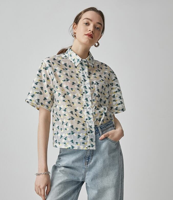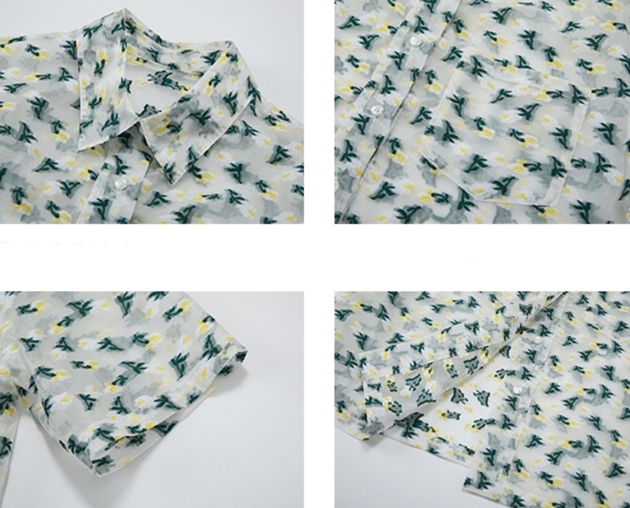 シャツ トップス ブラウス 花柄 半袖 シースルー ゆったりめ 大人 カジュアル リゾート お出かけ レトロ フロントボタン 春 夏