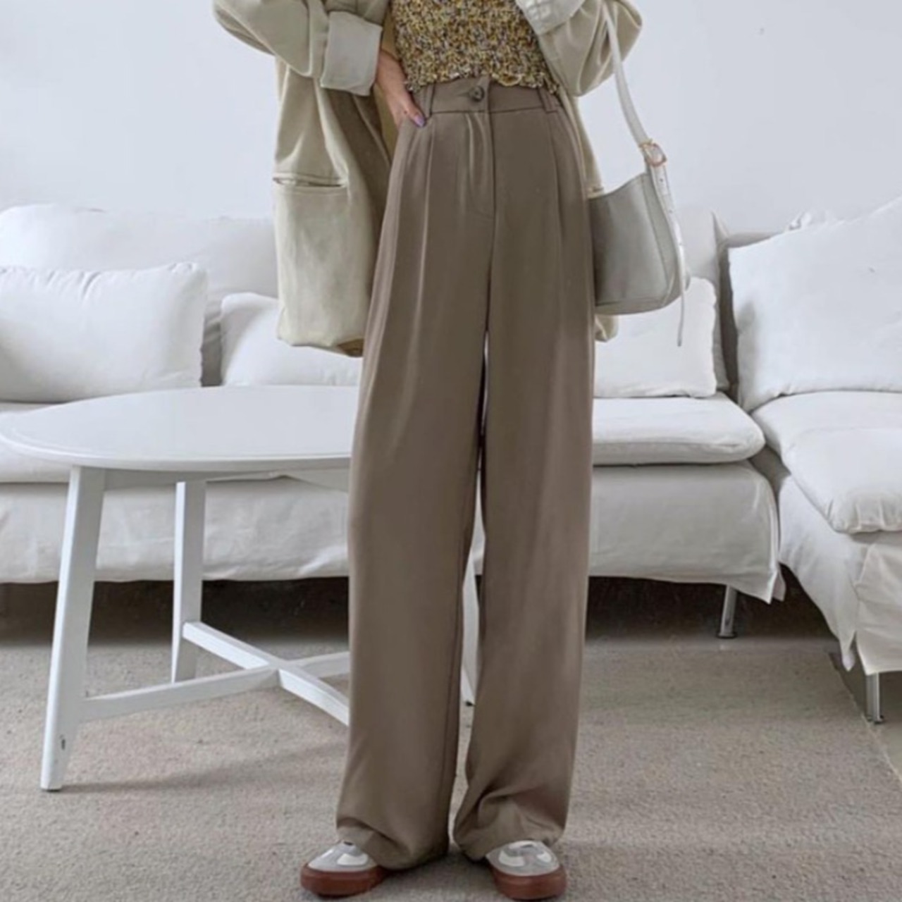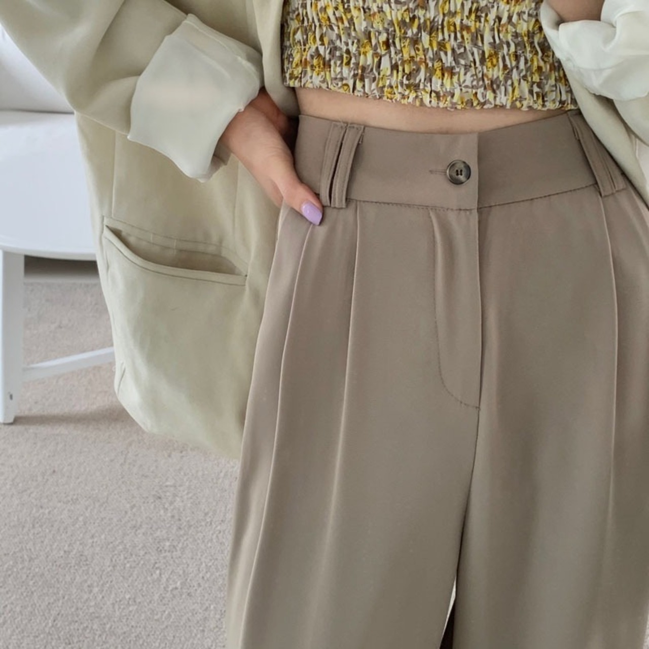 全3色 スラックスパンツ パンツ ボトムス ゆったり タックパンツ ワイドパンツ ストレート ハイウエスト カジュアル きれいめ メンズライク おしゃれ 大人 春 夏