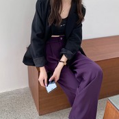 フロントのタック入りがお腹周りをすっきり見せてくれるパンツもおススメ♪