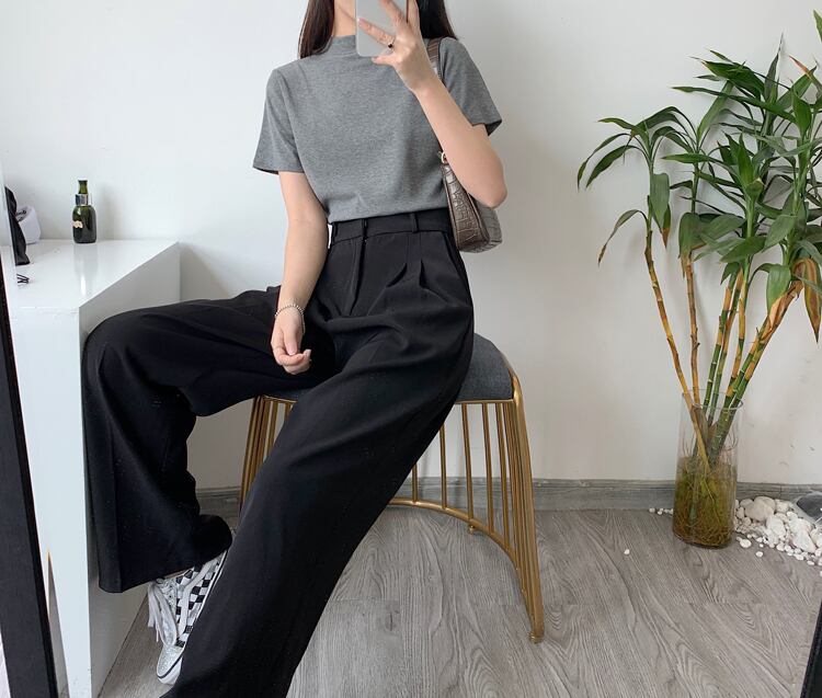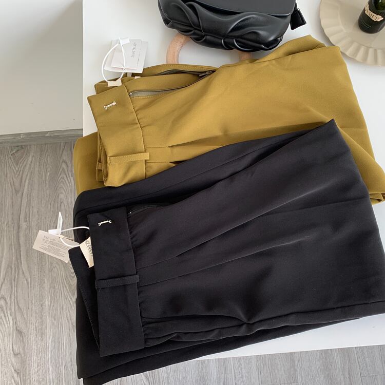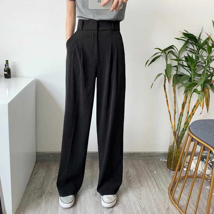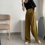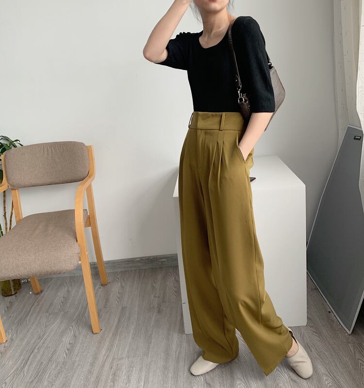 全2色 スラックスパンツ パンツ ボトムス ゆったり センタープレス タックパンツ ワイドパンツ ハイウエスト ストレート カジュアル きれいめ エレガント 上品 おしゃれ 大人 春 夏