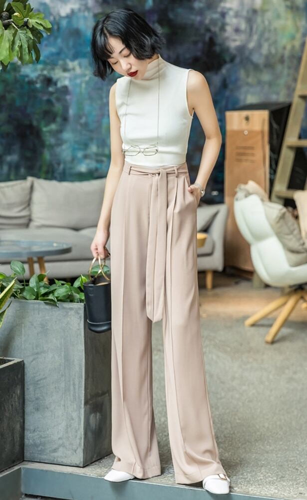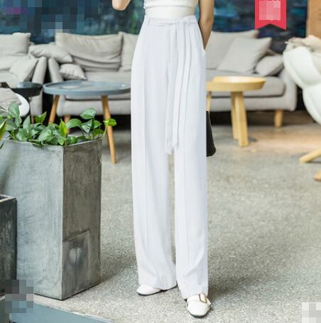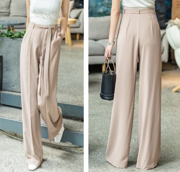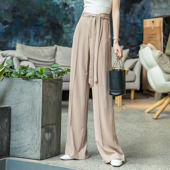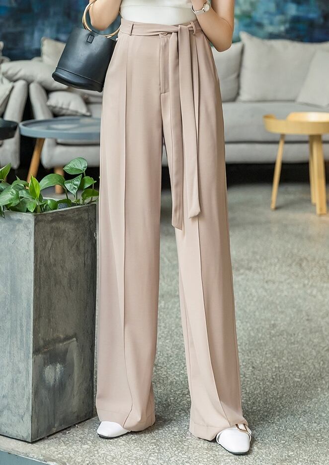 全3色 ワイドパンツ ボトムス ゆったり センタープレス ウエストリボン 大人 ハイウエスト ストレート カジュアル きれいめ エレガント 上品 大人 女子会 春 夏
