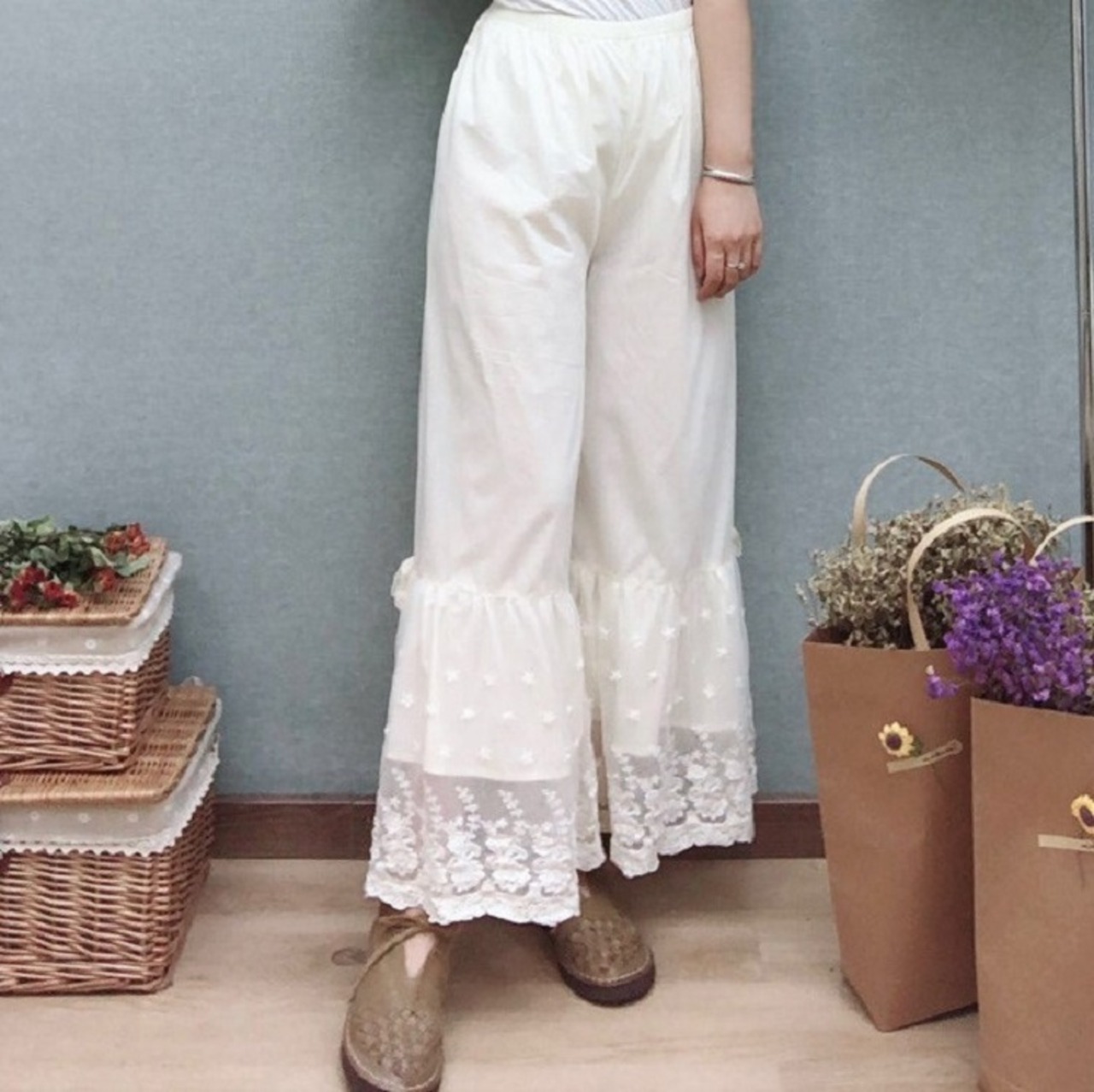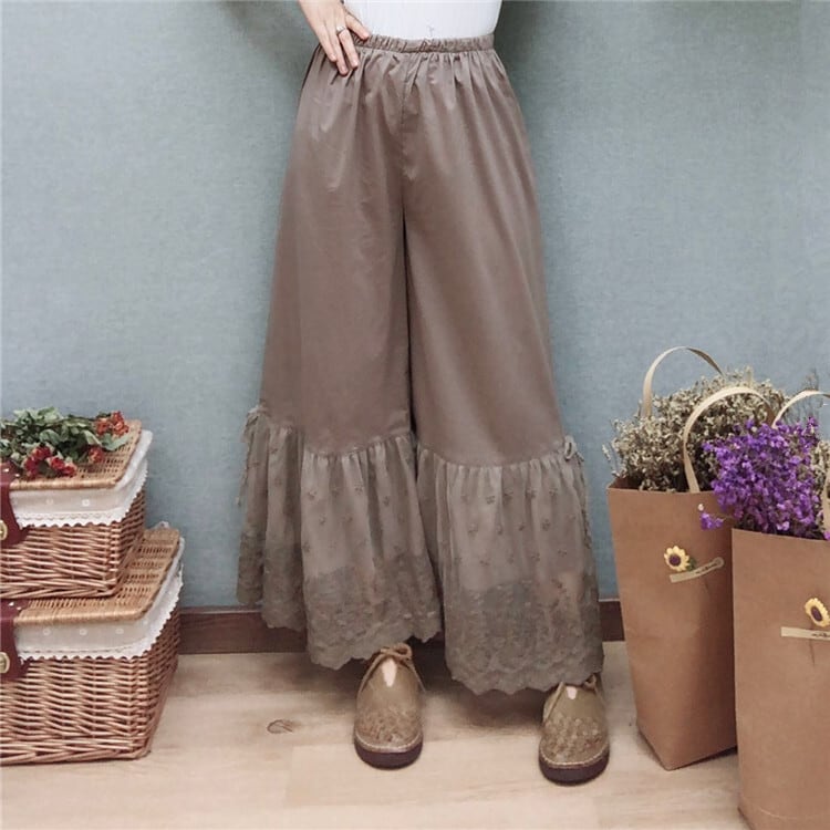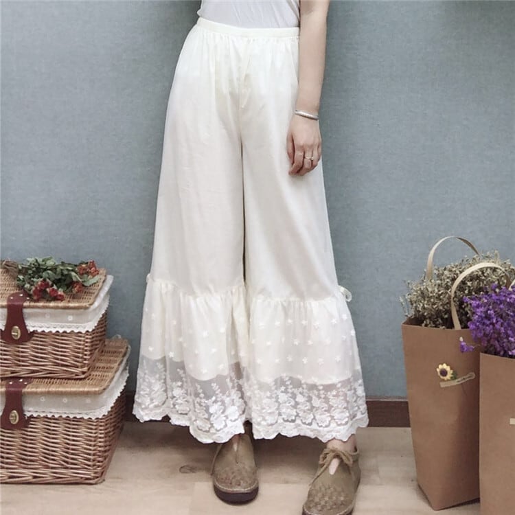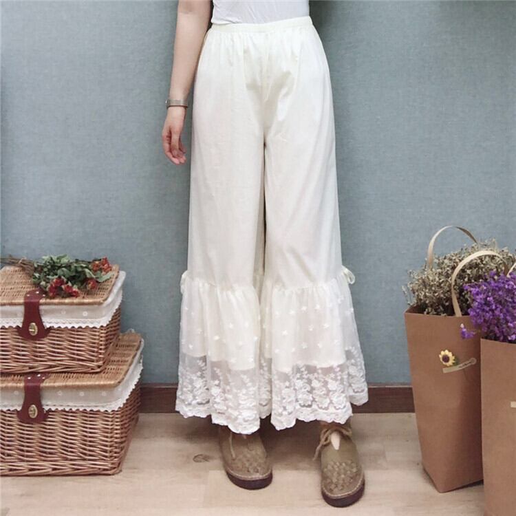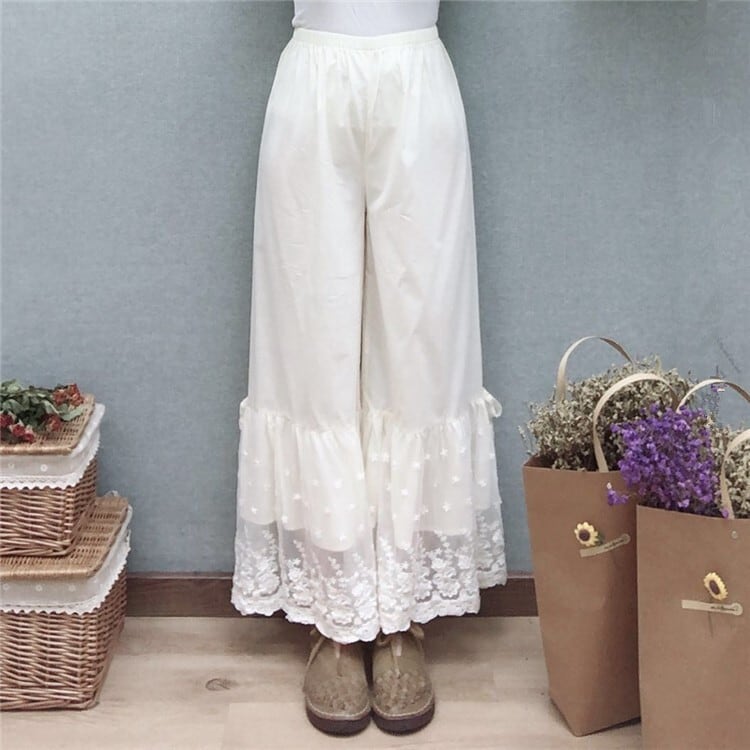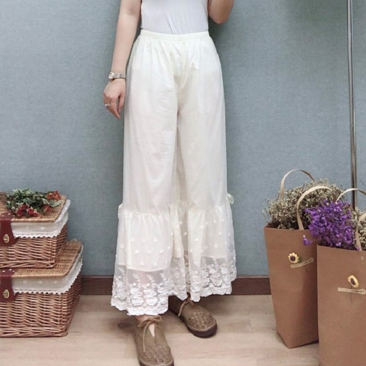 幅広の裾レースがガーリーなぺチパンツ。