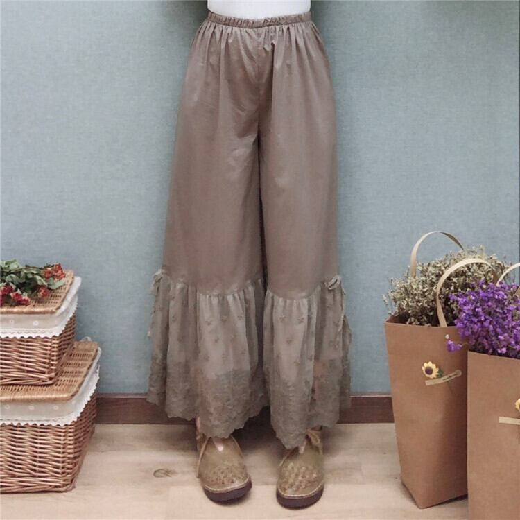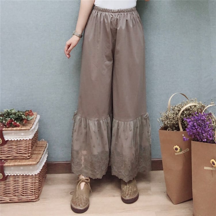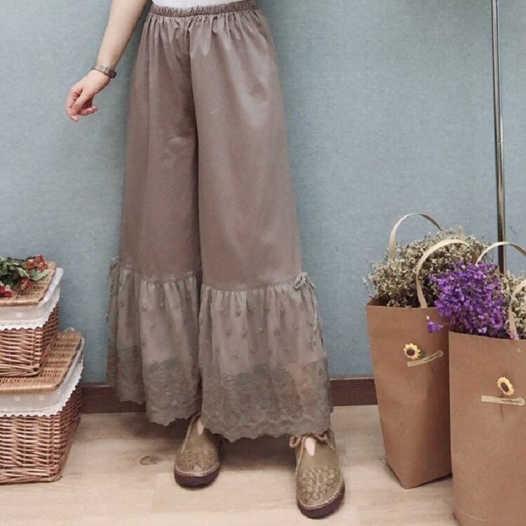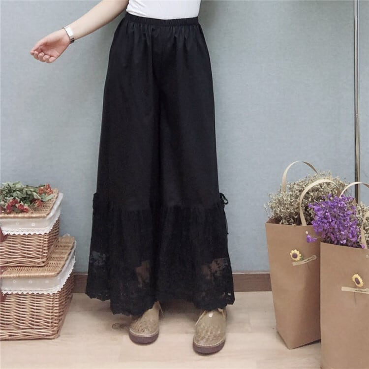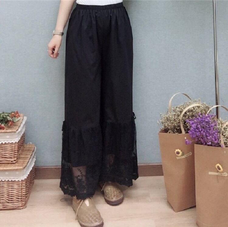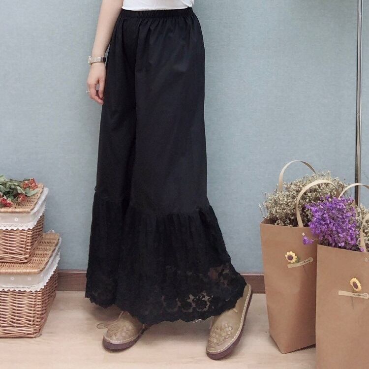 全3色 ペチパンツ インナー 裾レース ロング丈 ワイドパンツ ウエストゴム チラ見せ 無地 カジュアル きれいめ かわいい お出かけ デート 夏 リゾート デイリー アプリコット カーキ ブラック