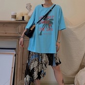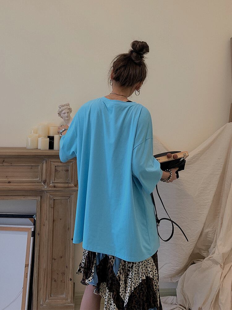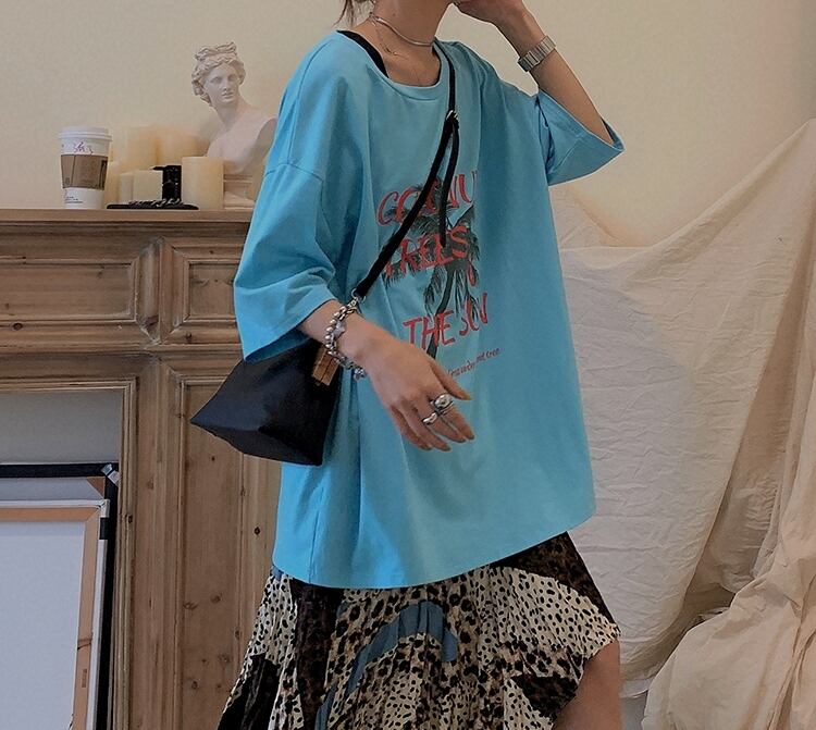 トップス Tシャツ ロゴ入り オーバーサイズ 7分袖 ラウンドネック ゆったり カジュアル 大人 デイリー シンプル リゾート リラックス 夏