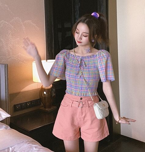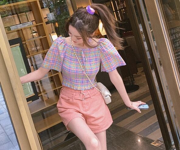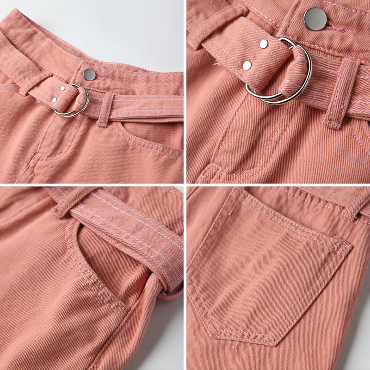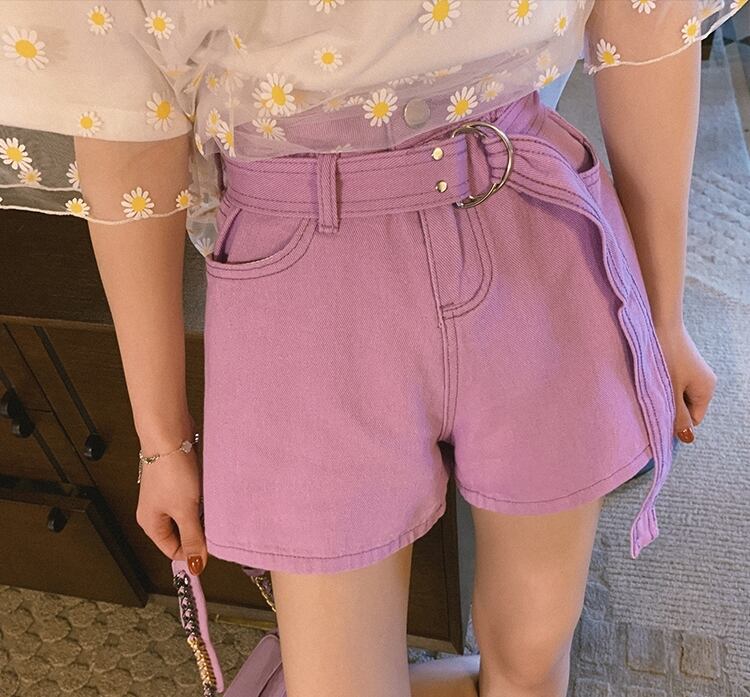 全2色 ショートパンツ デニムショートパンツ ミニ丈 ハイウエスト ジーンズ ガーリー ウエストベルト カジュアル デイリー お出かけ リゾート デート 可愛い 夏