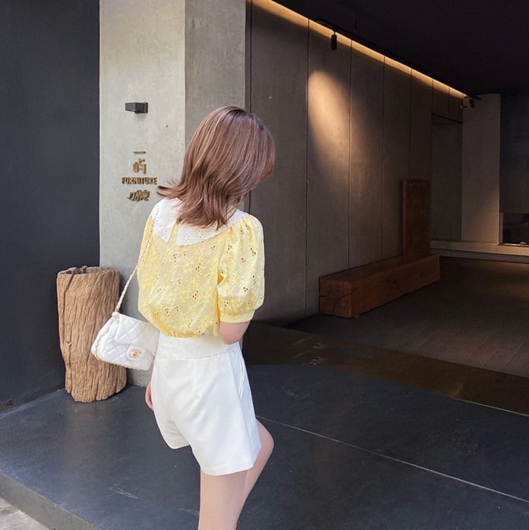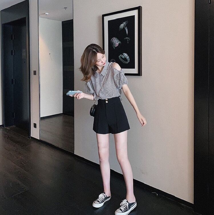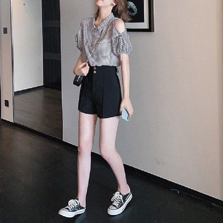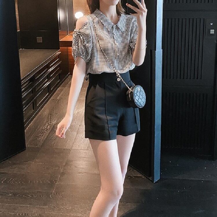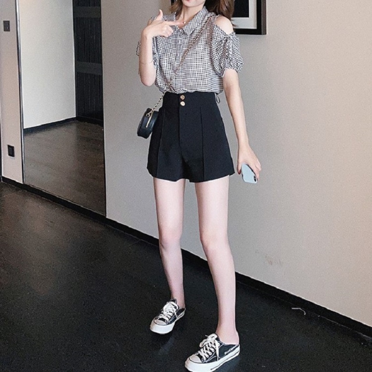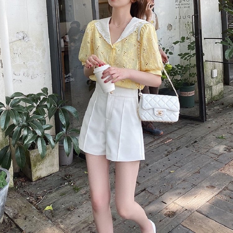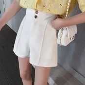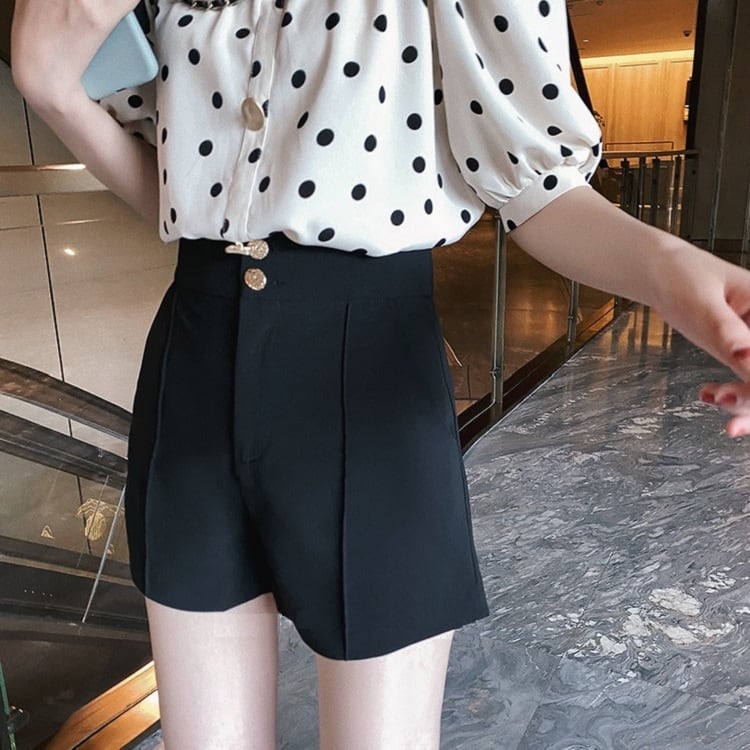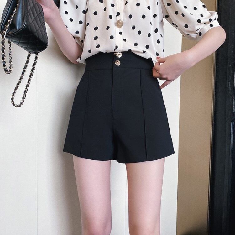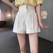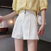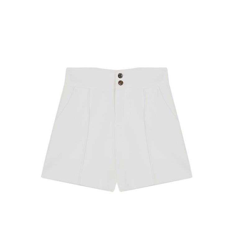 全2色 ショートパンツ カジュアルパンツ ハイウエスト センタープレス ゆったり きれいめ カジュアル リゾート お出かけ デート 春 夏 デイリー ホワイト ブラック