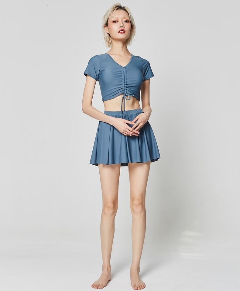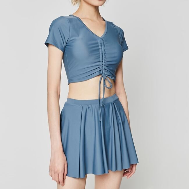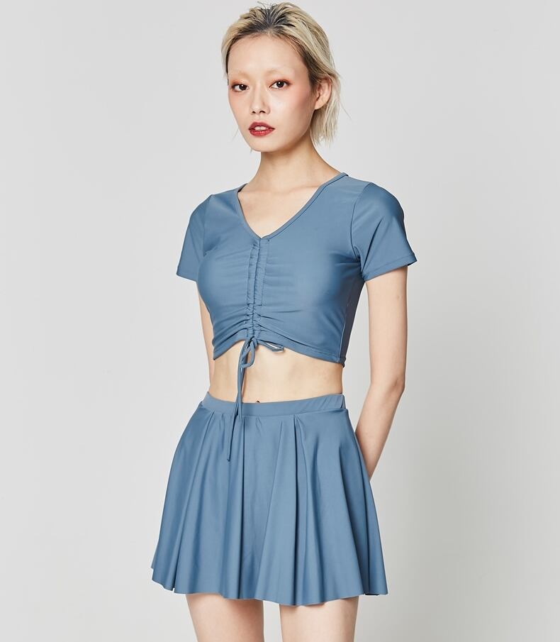 上下セット水着 ビキニ タンキニ水着 ワイヤーなし スカート水着 体型カバー 大人 半袖 ハイウエスト プール 海 ビーチ バカンス リゾート 夏
