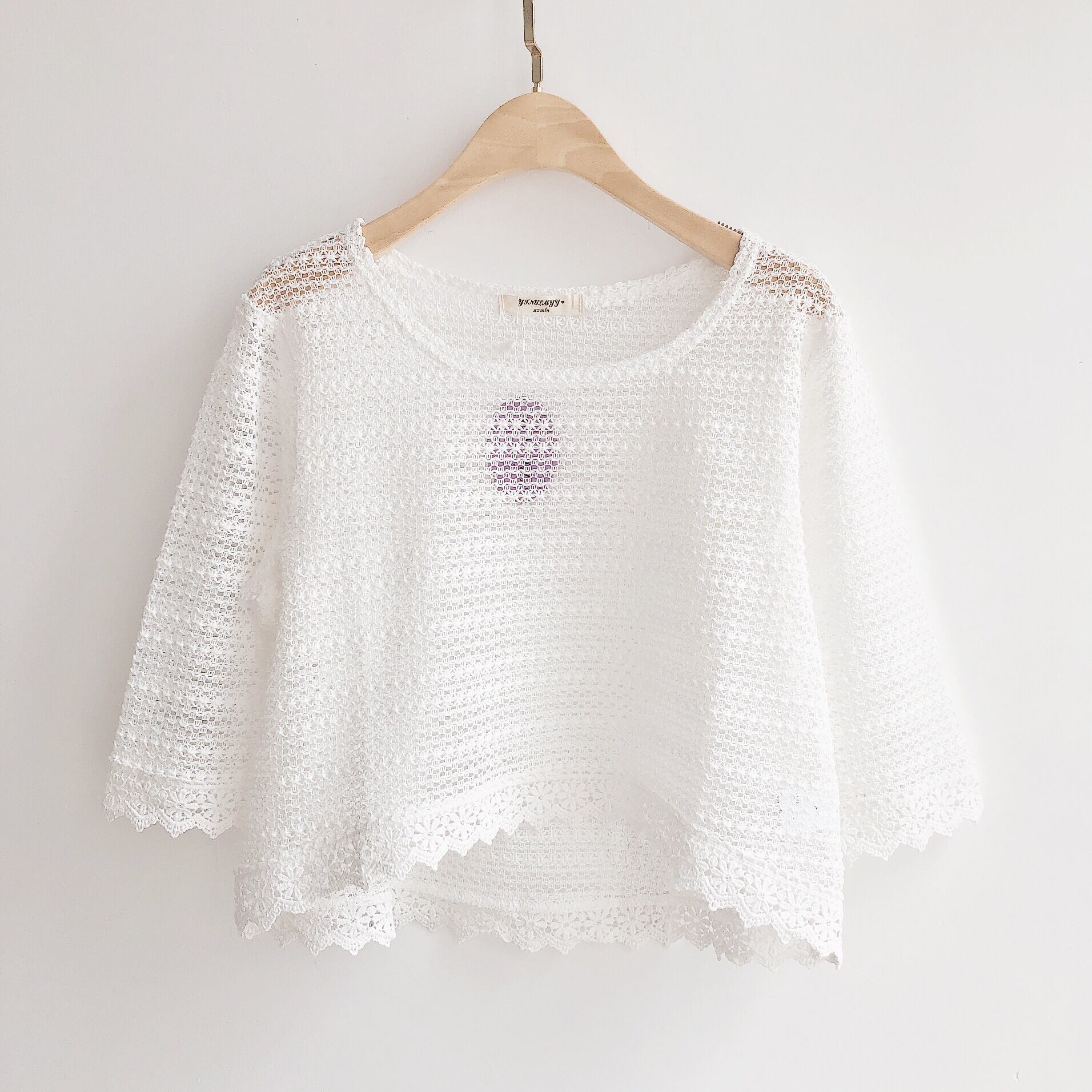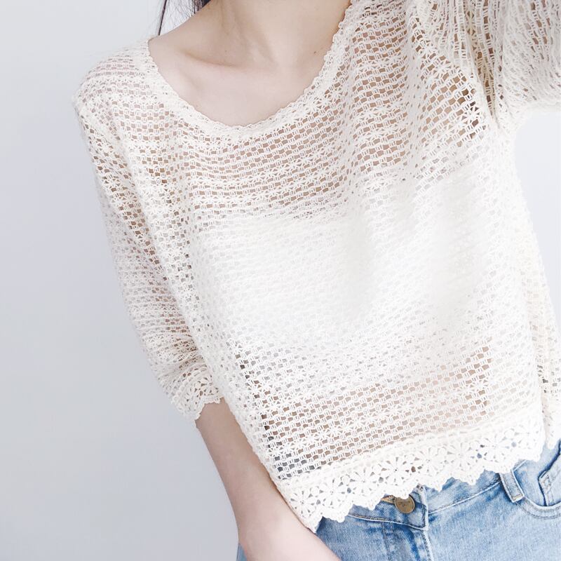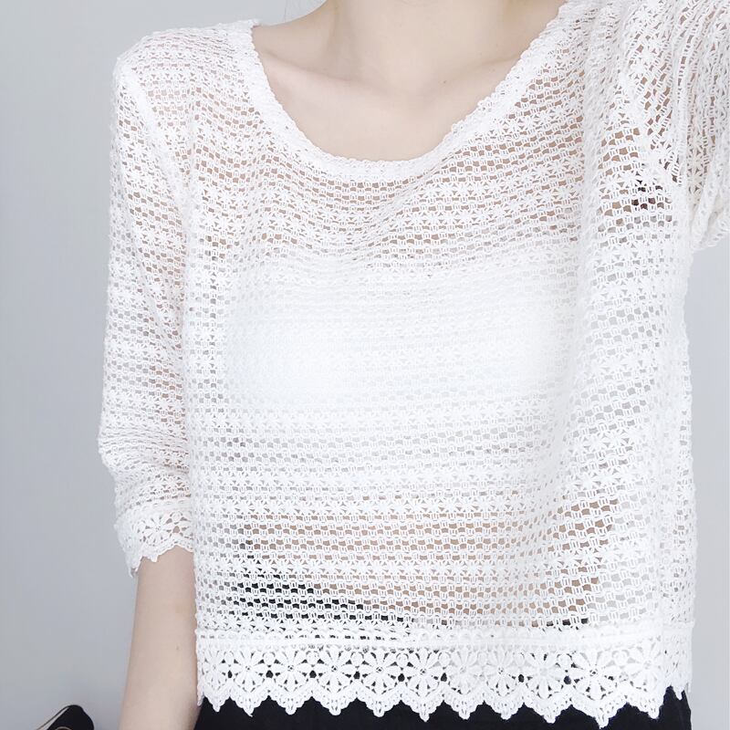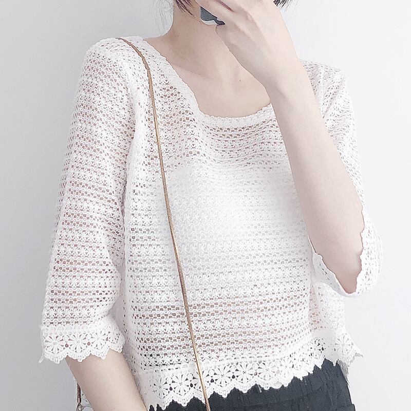 全2色 トップス Tシャツ 総レース ブラウス 花柄 Uネック カットソー 七分丈 透け感 ミディアム丈 春夏 涼しい カジュアル エレガント 大人可愛い 女子会 デート きれいめ