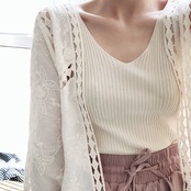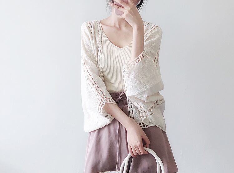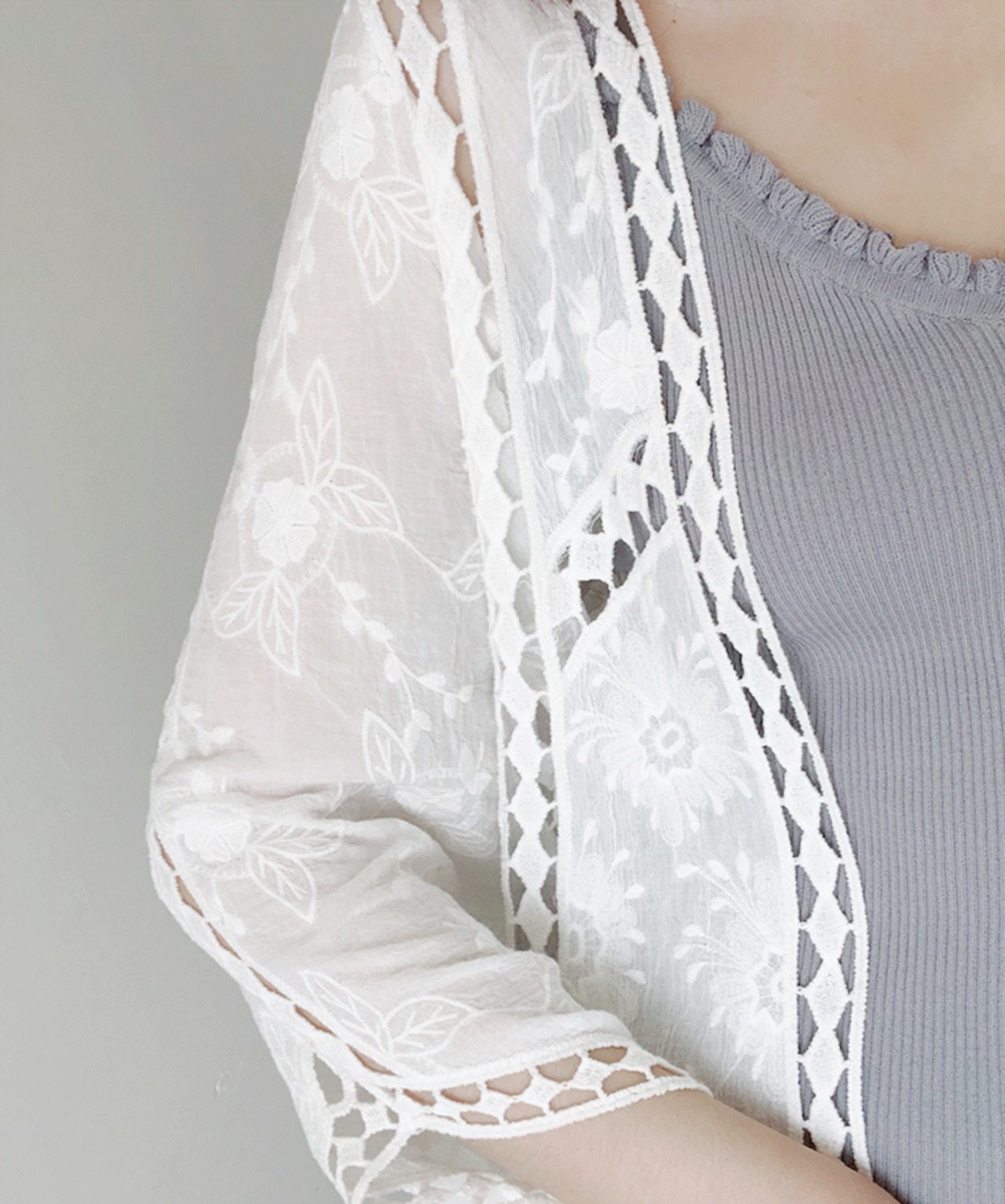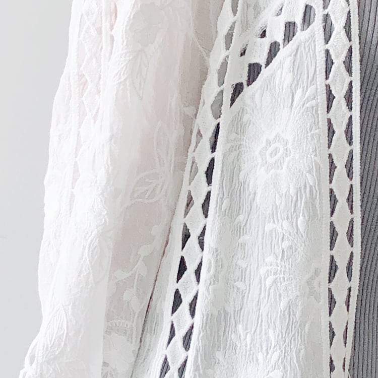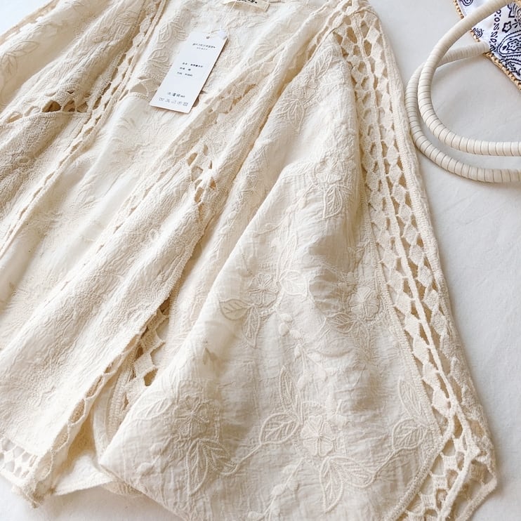 サッと羽織るのにピッタリなレース刺繍入りカーディガンです。