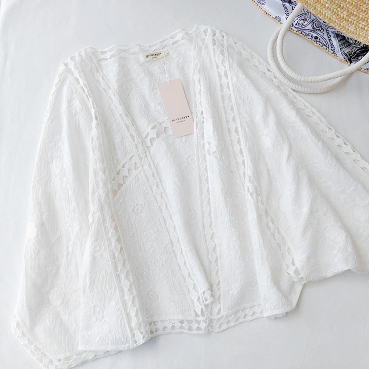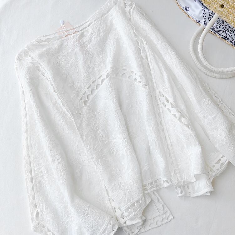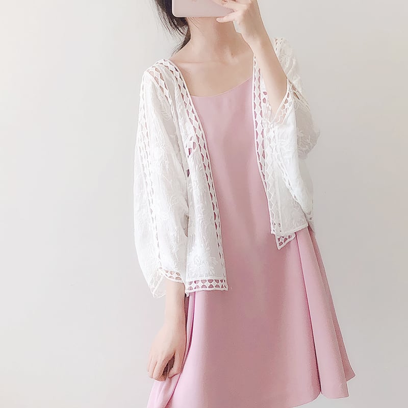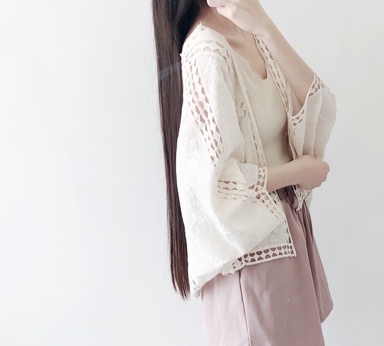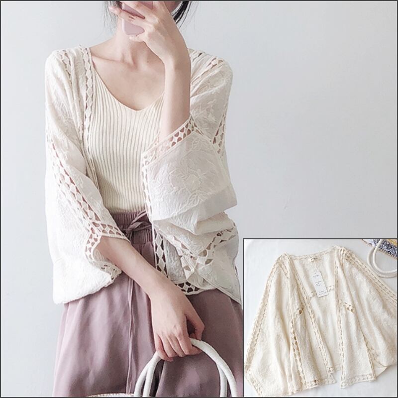 全2色 カーディガン 七分丈 刺繍 ボレロ ももんが 春夏 涼しい カジュアル エレガント 大人可愛い カジュアル 女子会 デート お出かけ 体型カバー ゆったりシルエット