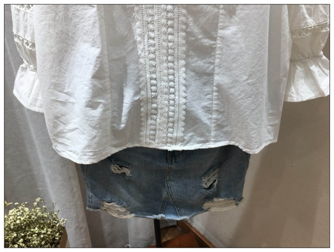 ボリューム感のあるフリルがフェミニンな印象のブラウス。