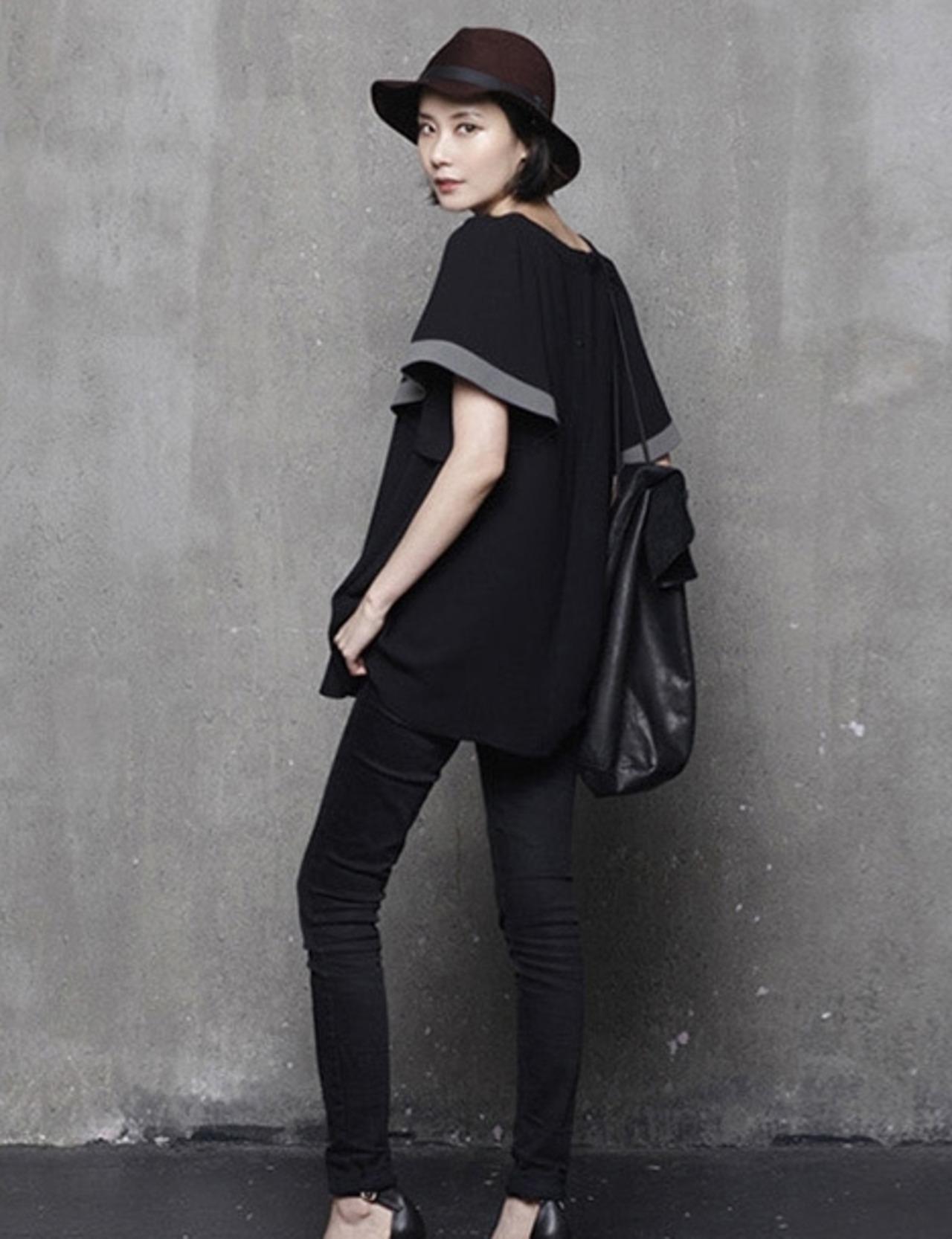 トレンドのゆったりシルエットが大人の抜け感を演出するブラウス。