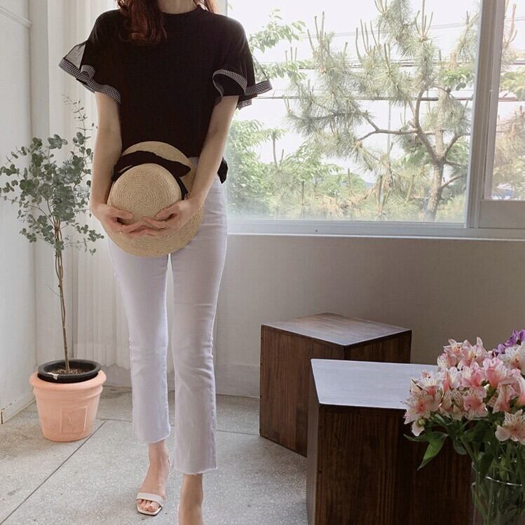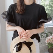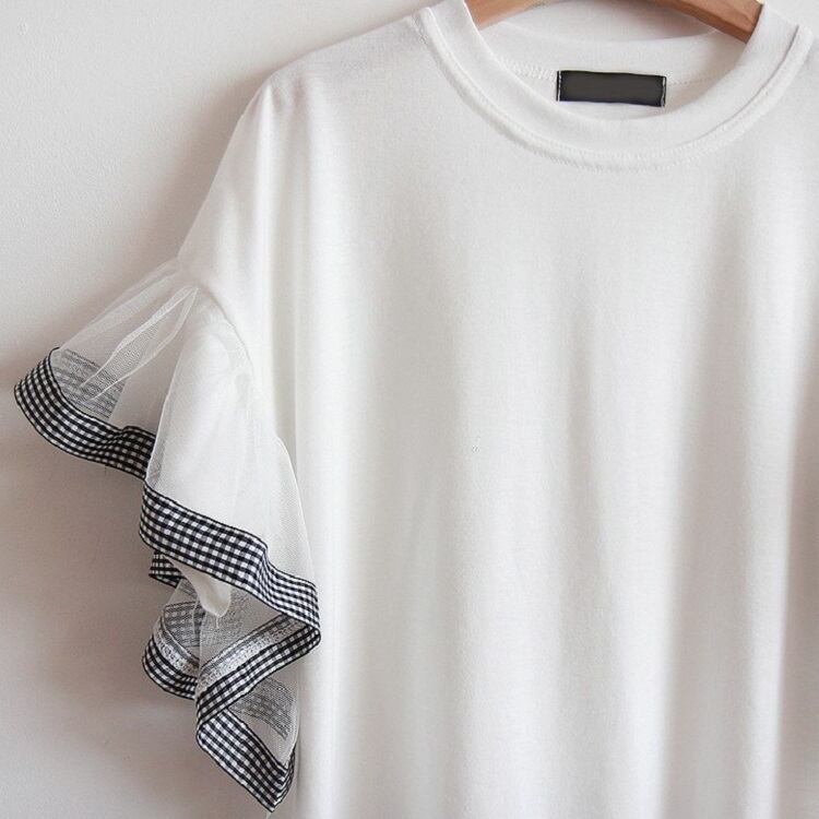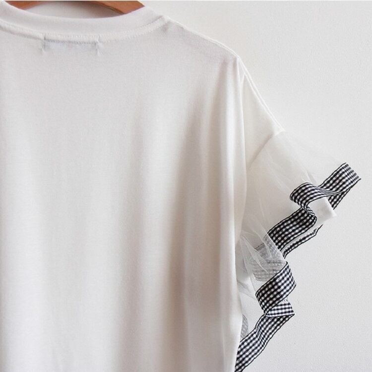 レースのフリル袖がトレンド感のある半袖Tシャツ。