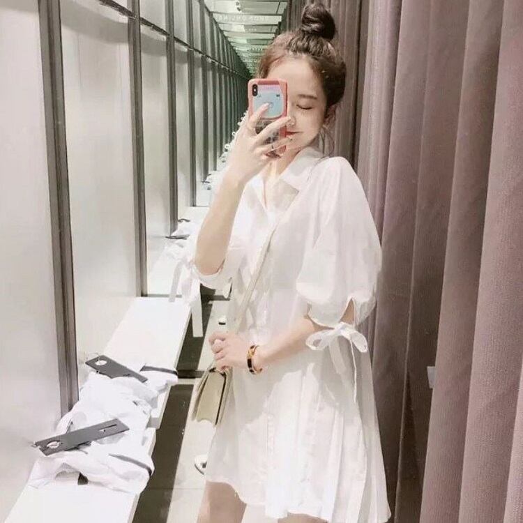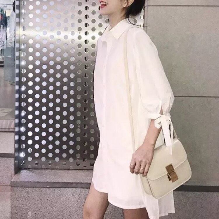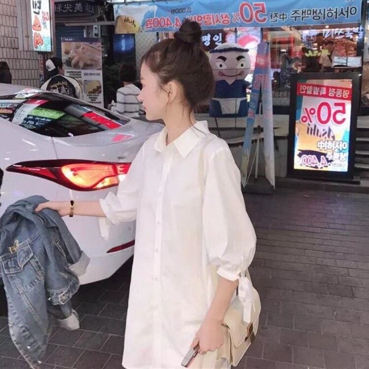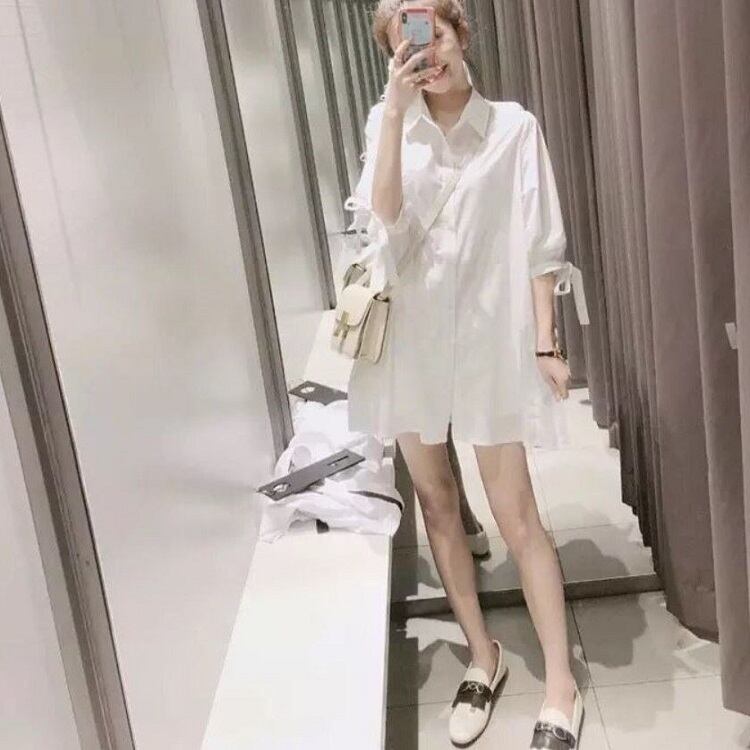 大きいサイズ シャツブラウス チュニック トップス ミニワンピース 七分袖 きれいめ ゆったり 体型カバー マタニティ カジュアル 可愛い フェミニン 上品 お出かけ デイリー 夏 ホワイト