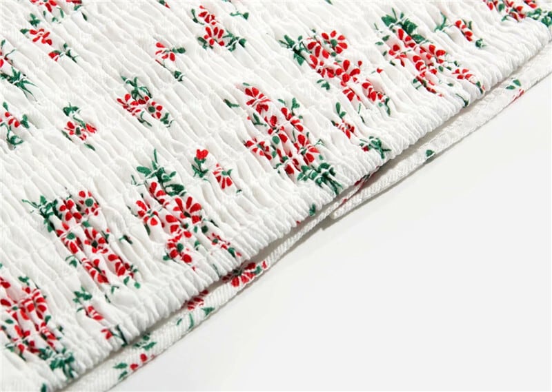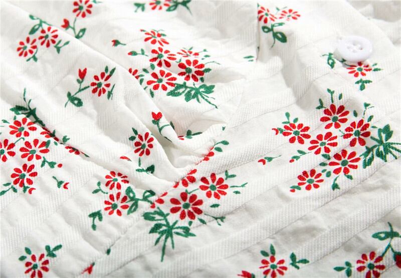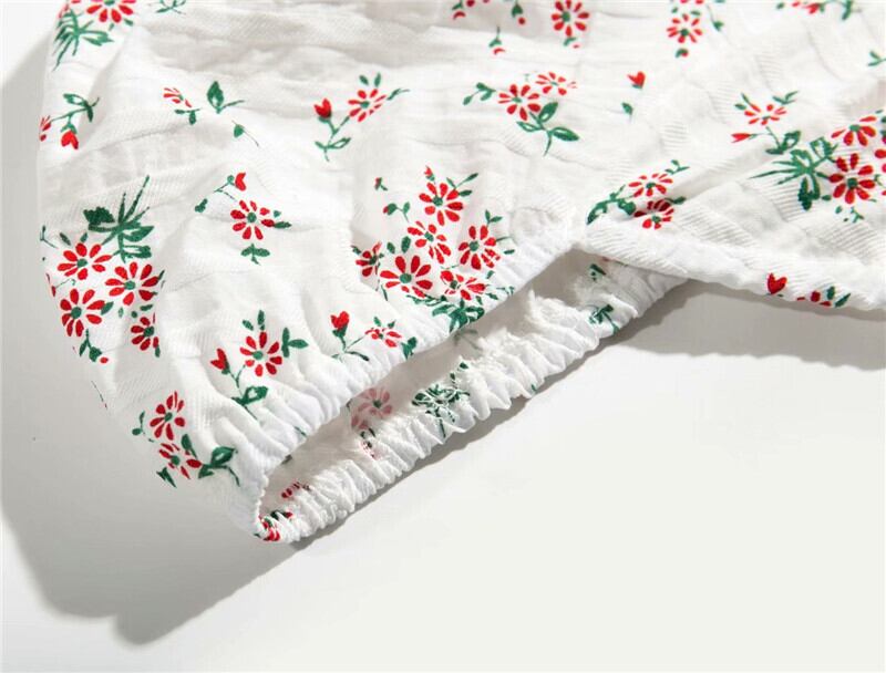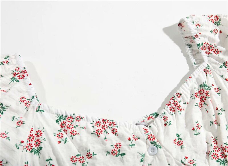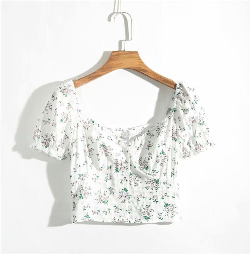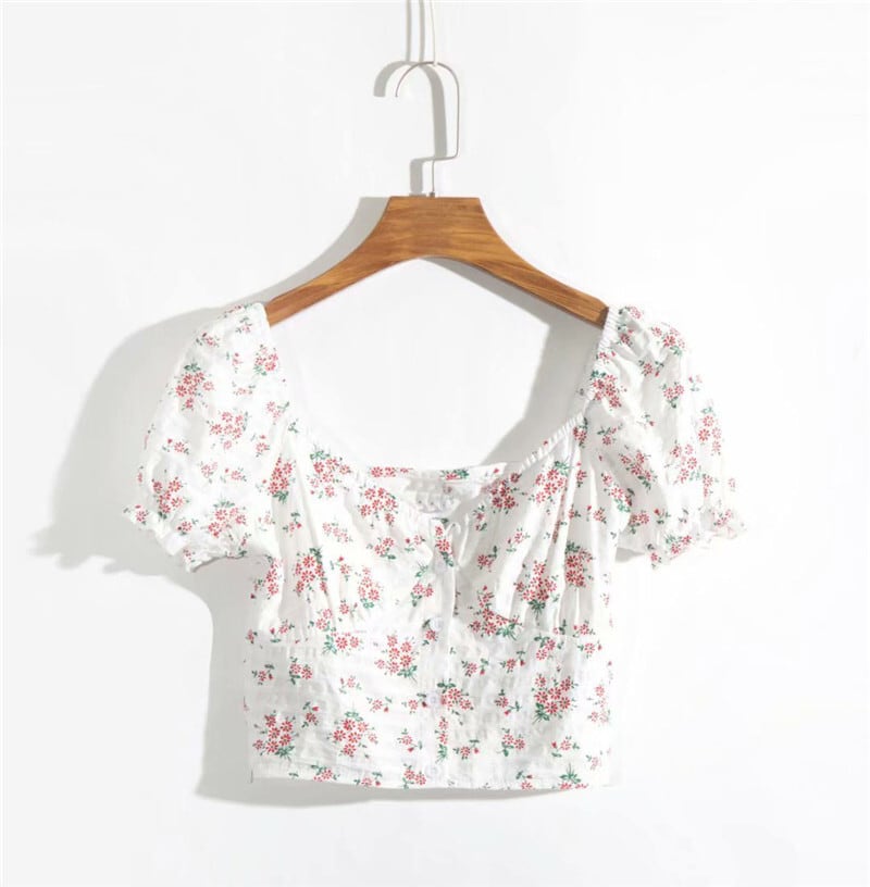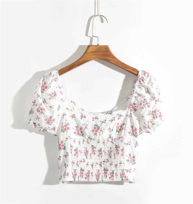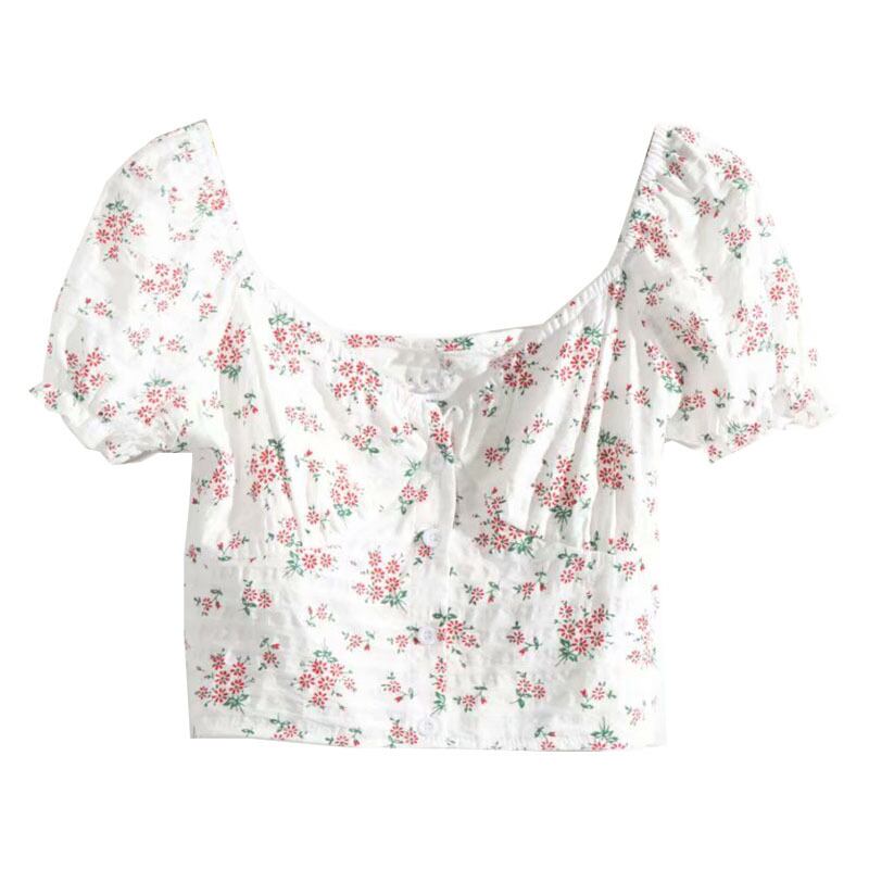 全2色 Tシャツ カットソー トップス ショート丈 スクエアネック パフスリーブ 半袖 花柄 きれいめ カジュアル 可愛い フェミニン ガーリー お出かけ デイリー 夏 ホワイト レッド グリーン