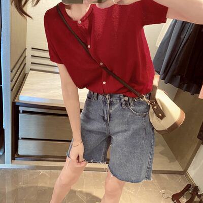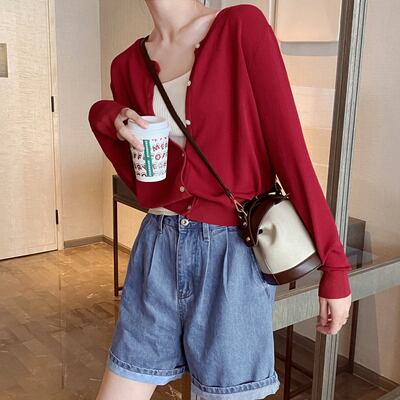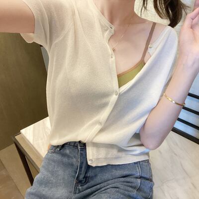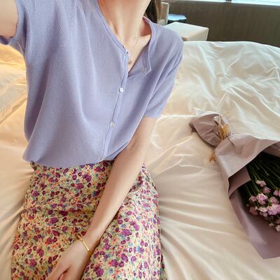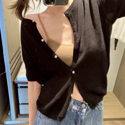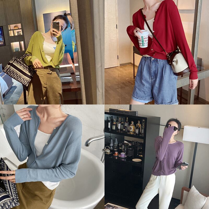 選べる袖丈 全6色2種 トップス カーディガン サマーニット ブラウス フロントボタン ラウンドネック 長袖 半袖 無地 ゆったり カジュアル 大人可愛い お出かけ シンプル 日焼け防止 日焼け対策 冷房除け 夏 秋