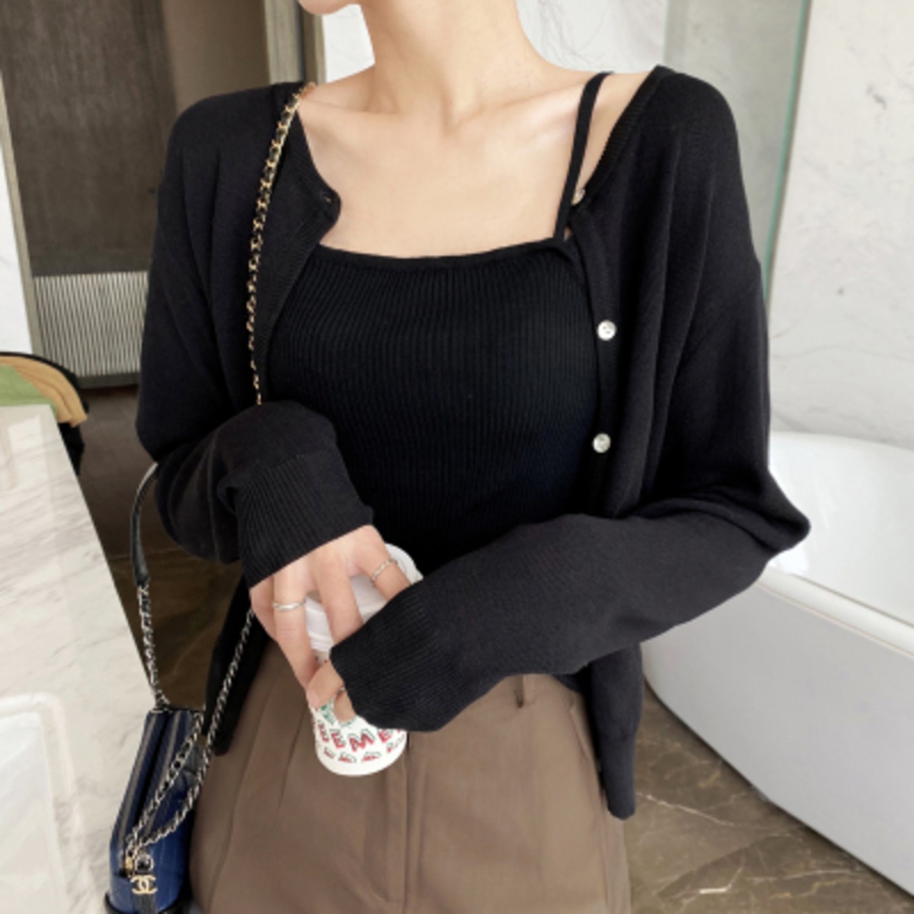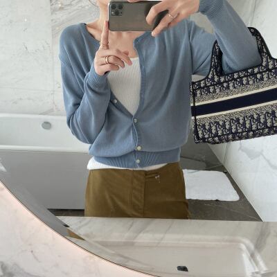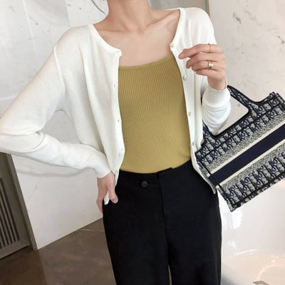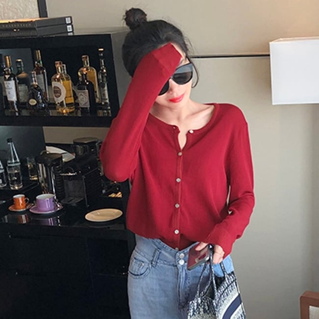 シンプルでベーシックデザインのカーディガン。