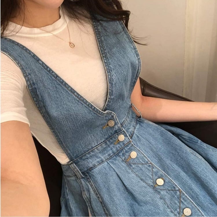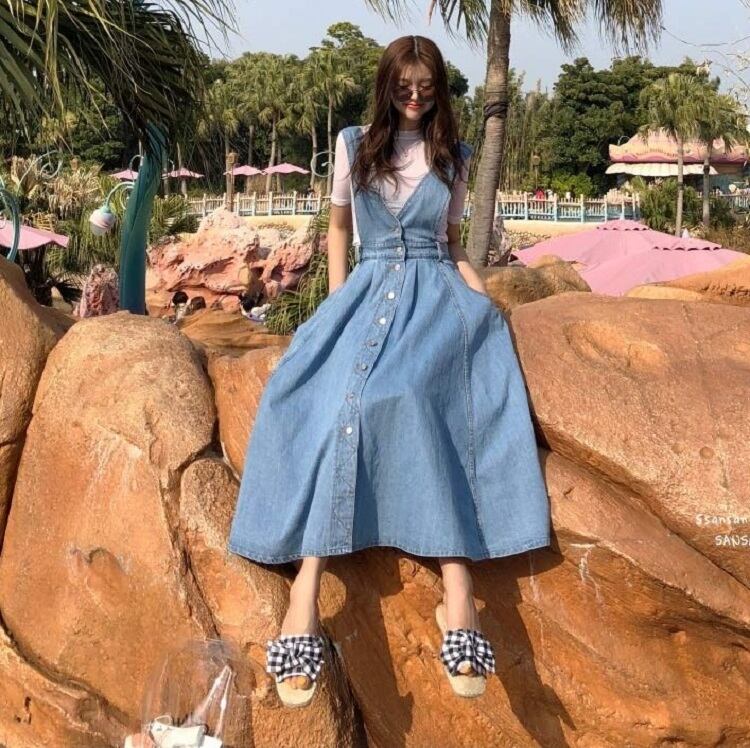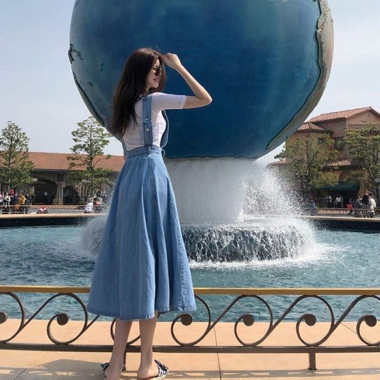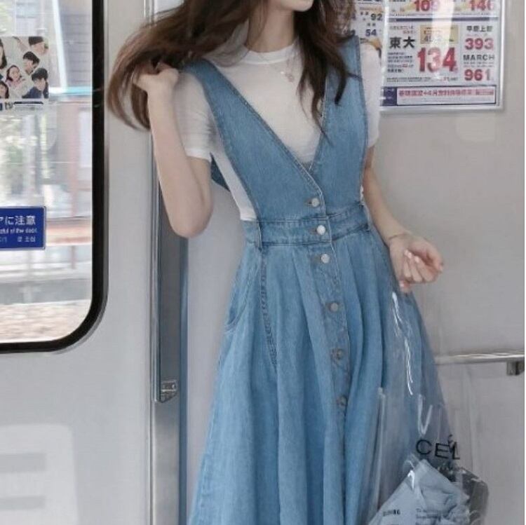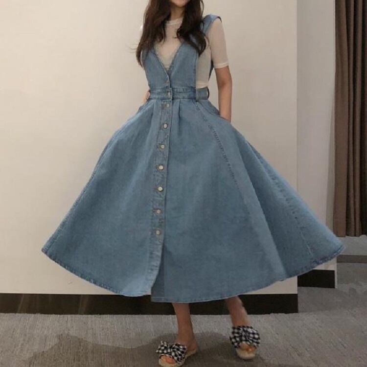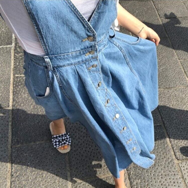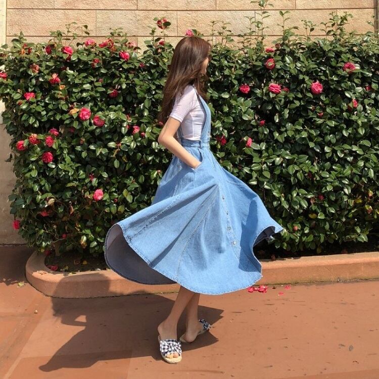 ジャンパースカート ロングスカート サロペット フレアスカート デニム カジュアル フェミニン お出かけ デイリー デート 女子会 夏 ブルー