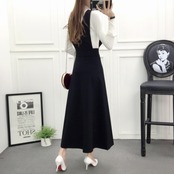 ハイウエストですっきりと細見えするシルエットのジャンパースカート。