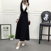 大きいサイズ ジャンパースカート ひざ丈 ミディ丈 サロペット フレアスカート Aライン レトロ ハイウエスト カジュアル フェミニン お出かけ デイリー デート 女子会 夏 2XL 3XL ブラック