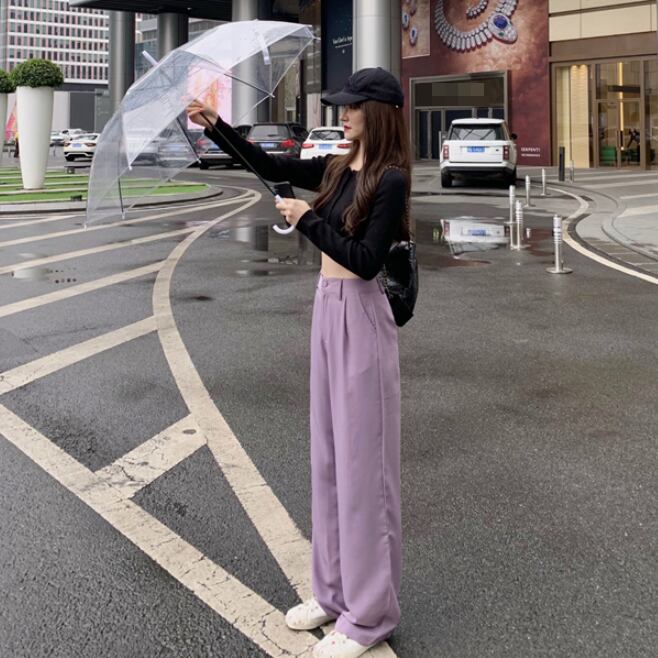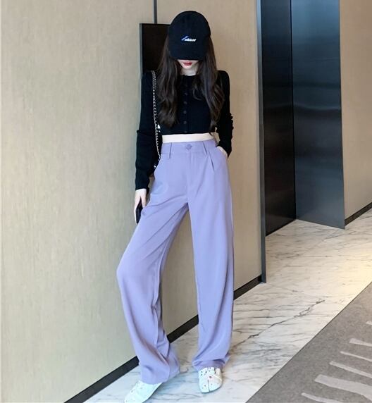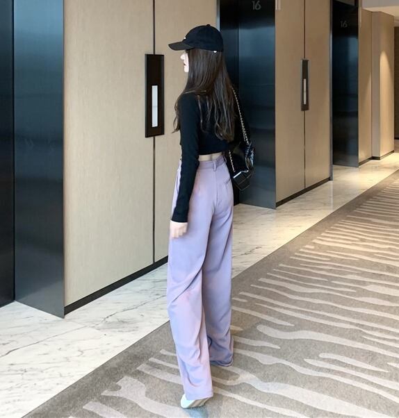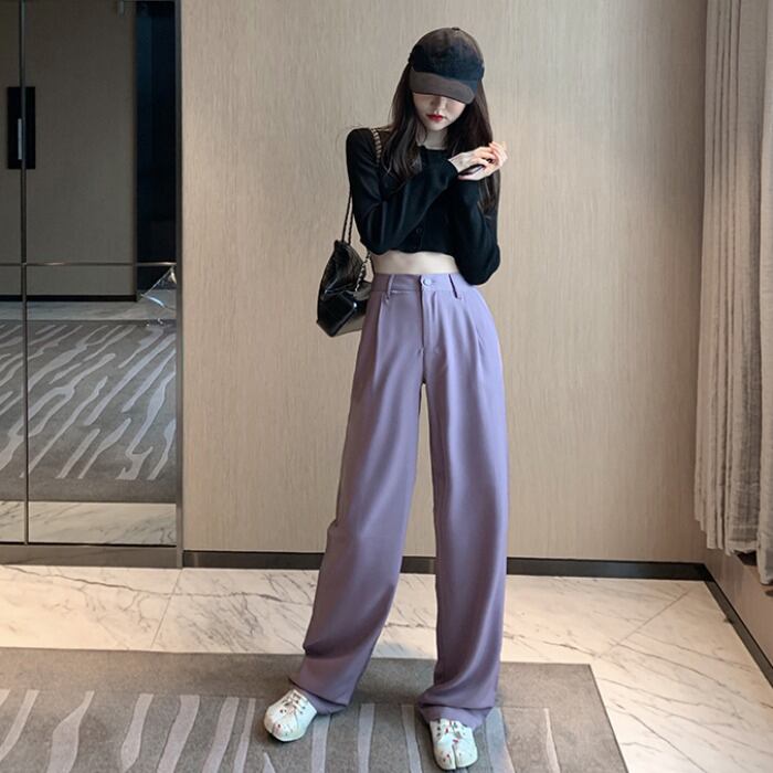 ショートな着丈が可愛いブラウスと相性抜群のスラックスパンツ。