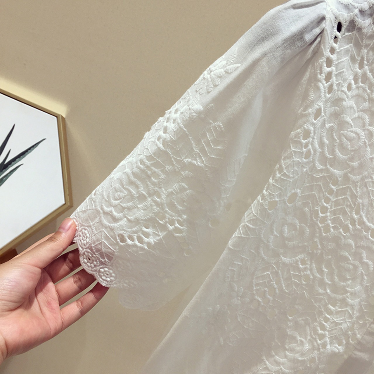レースのディテールが上品でフェミニンな半袖ブラウス。