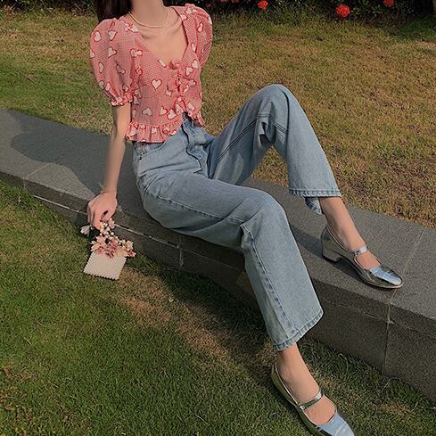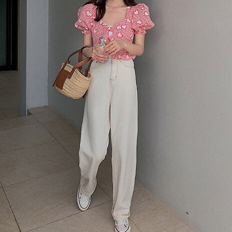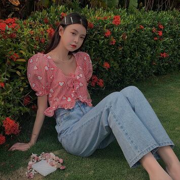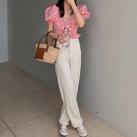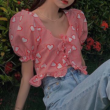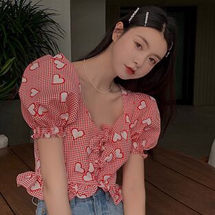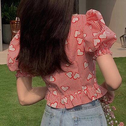ブラウス スクエアカラー 半袖 デート 人気 春 夏 かわいい カジュアル お出掛け デイリー 女子会 レトロ ポップ ハイウエスト 海 ビーチ