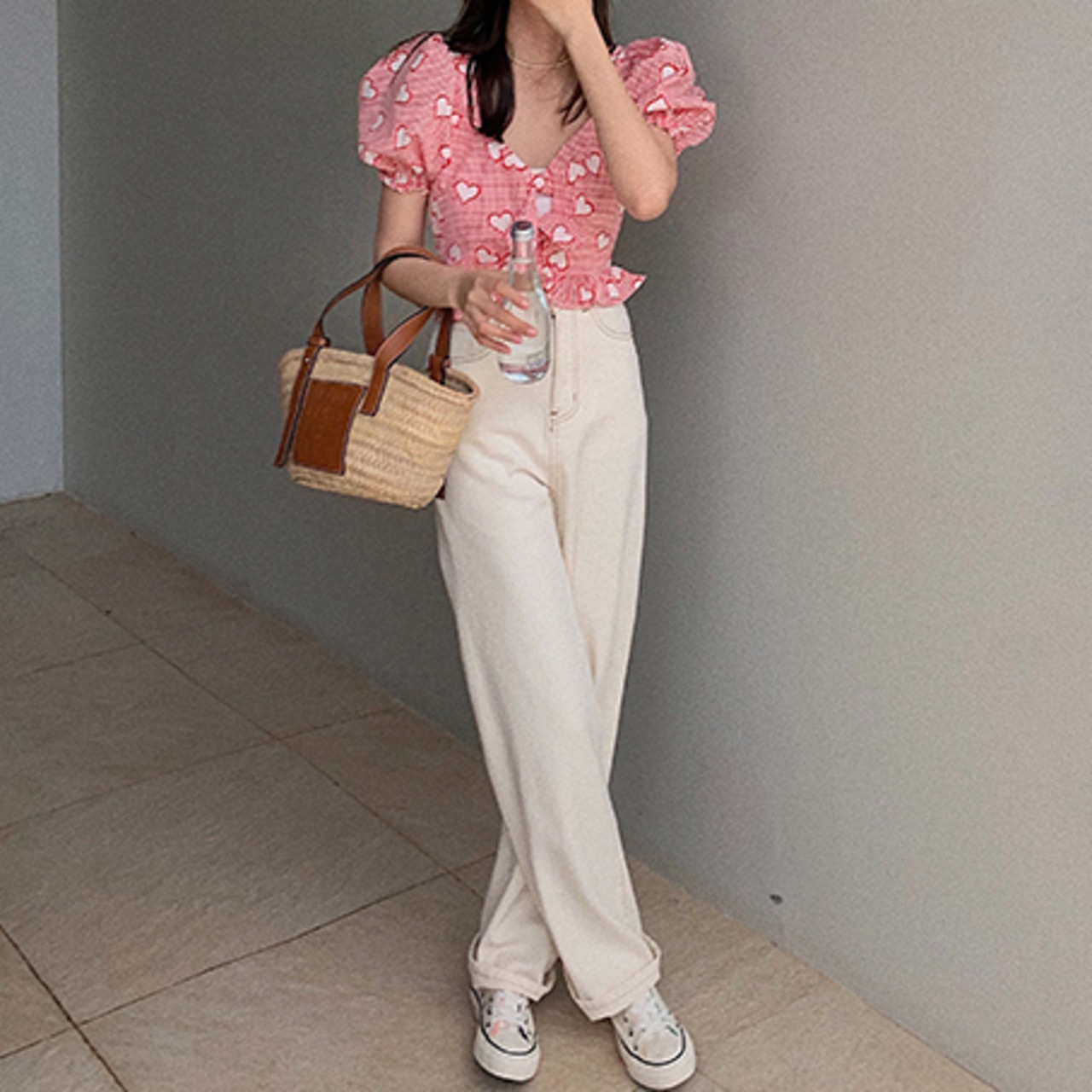 丈が短めなのでハイウエストボトムとの相性も◎