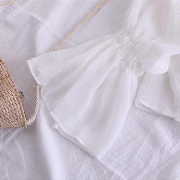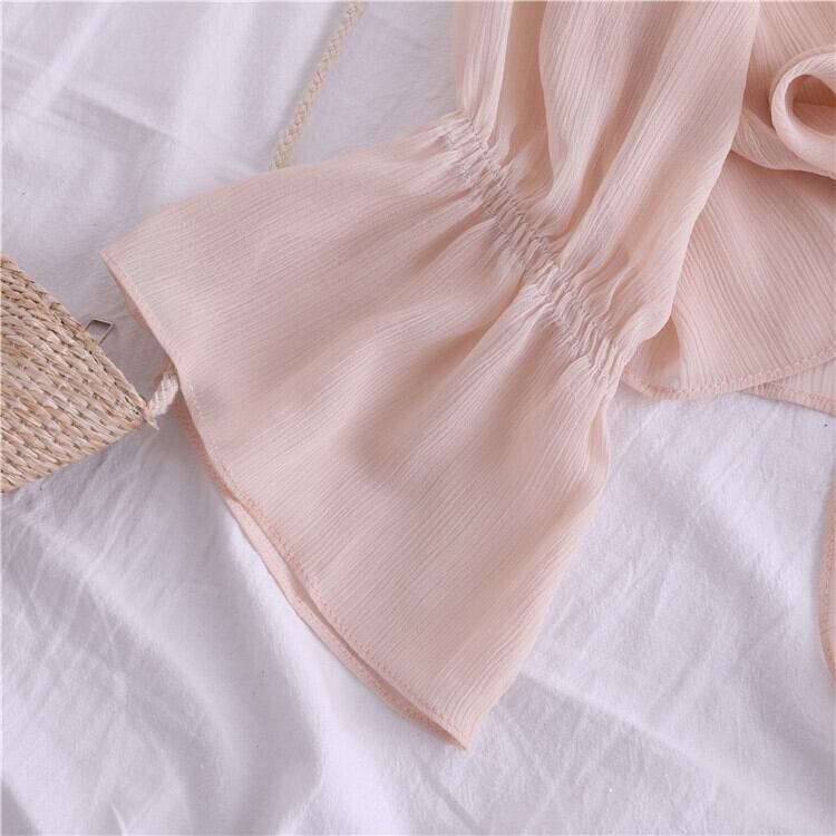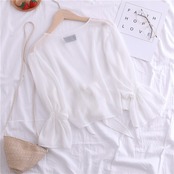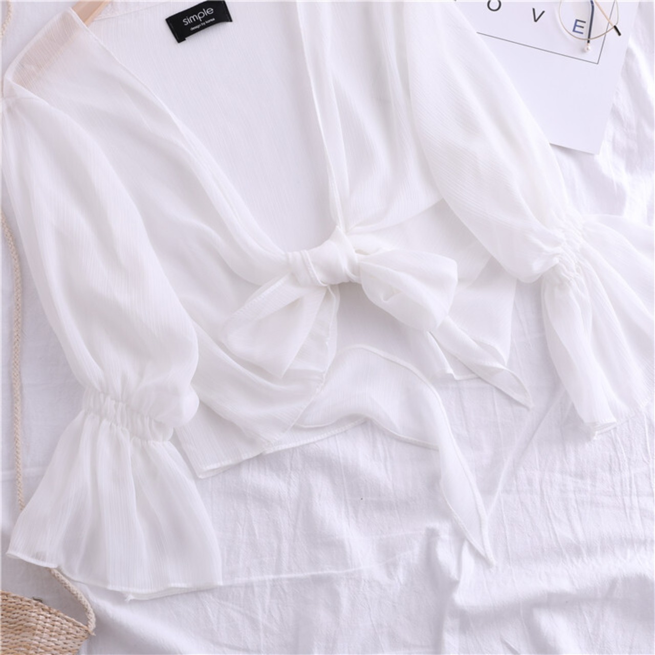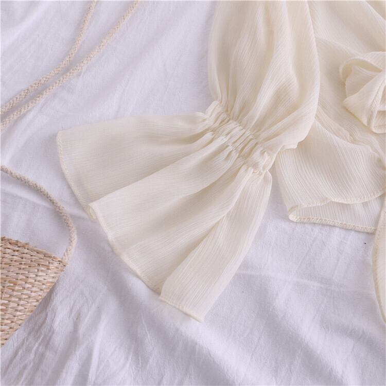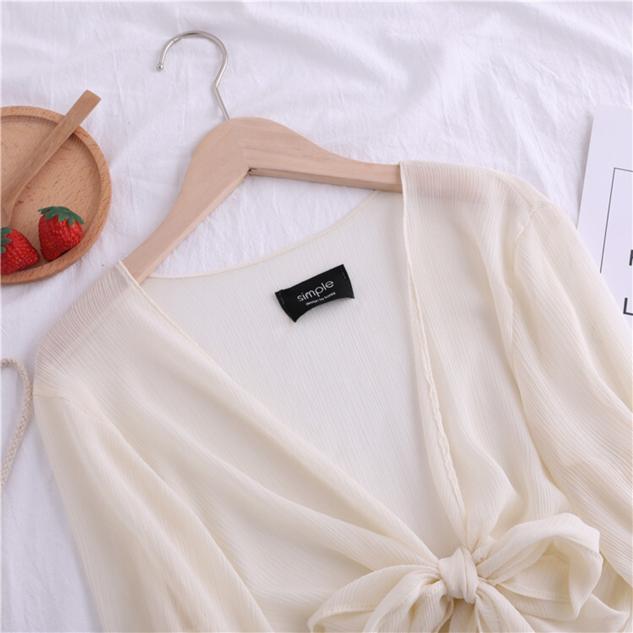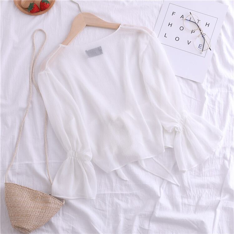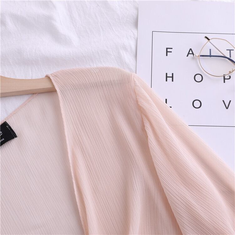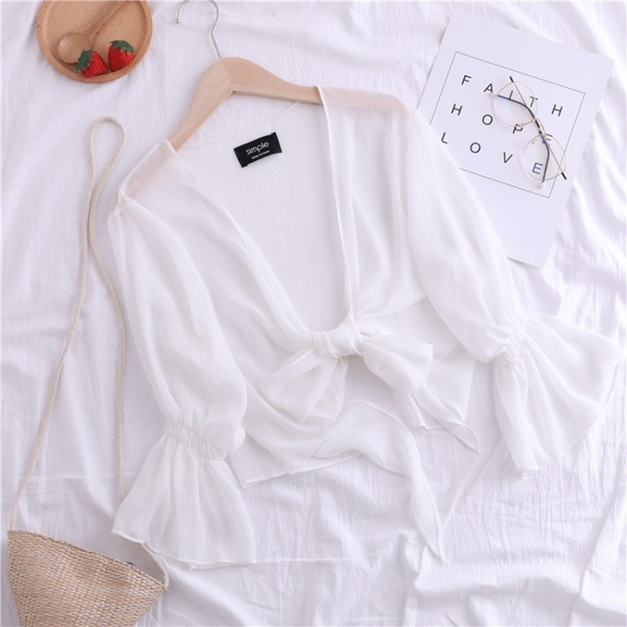 全4色 シフォンカーディガン ショール Vネック ショート丈 リボン 透け感 薄手 長袖 日焼け防止 冷房対策 フェアリー フェミニン リボン ゆったり 体型カバー カジュアル お出かけ デイリー リゾート デート 女子会 夏 ホワイト ブラック ピンク アプリコット
