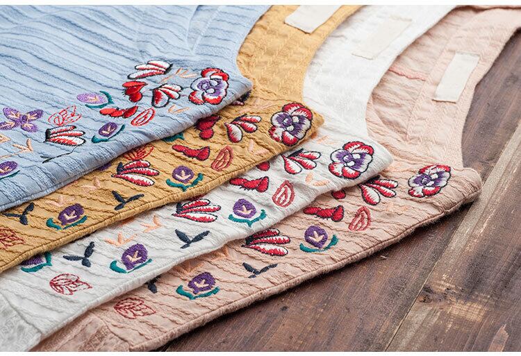 華やかな刺繍が印象的なリネントップスです。