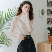 シースルーが上品で大人可愛いキャミソールとシースルーブラウスの2点セット。