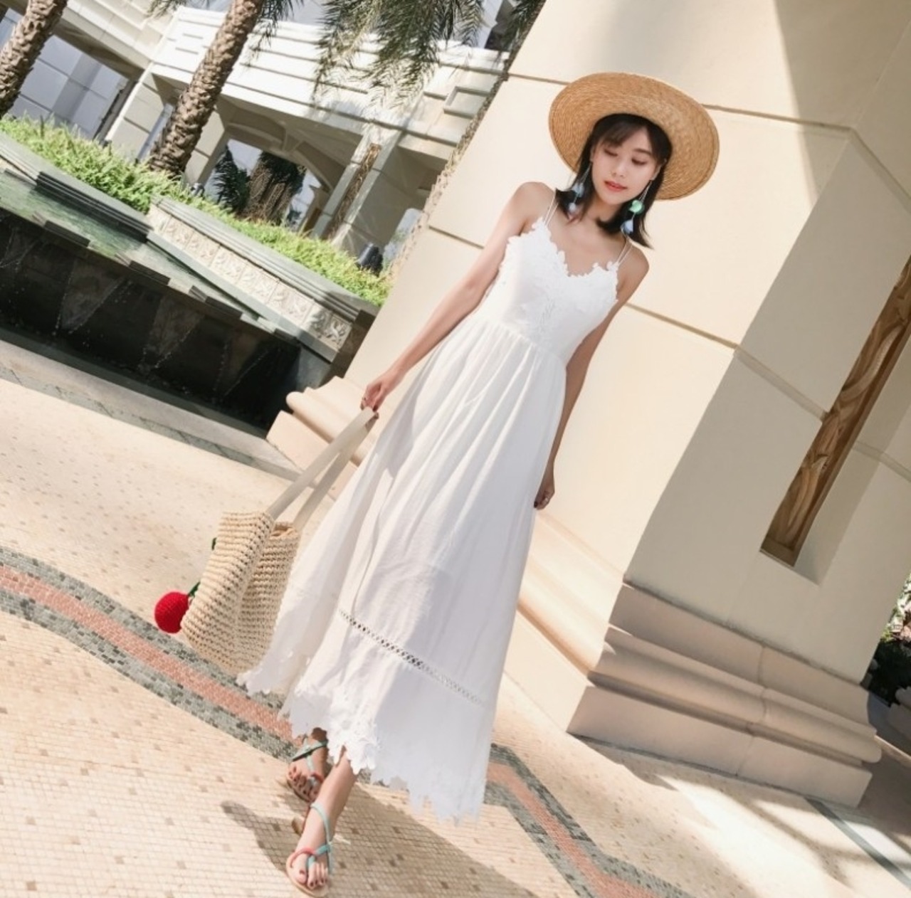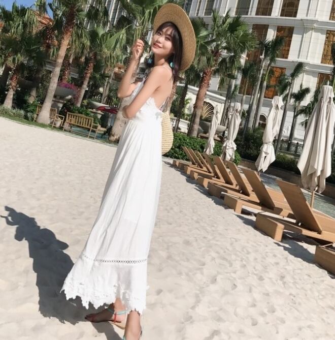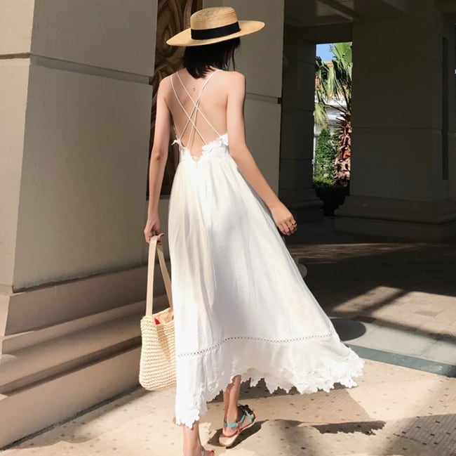 ワンピース キャミソールワンピ ロング丈 バックコンシャス バックシャン 背中開き 背中見せ バックリボン フレア Aライン Vネック レース カジュアル 大人 上品 リゾート デート 夏