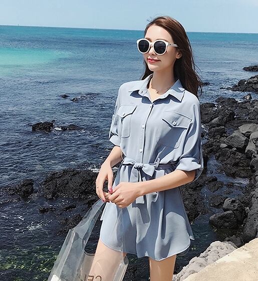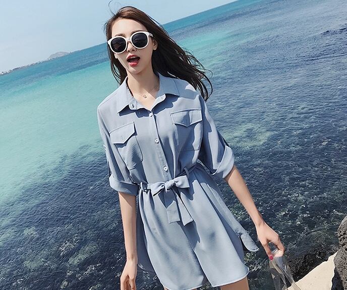 ウエストリボンが女性らしいシルエットを活かし、涼しげな印象が暖かい季節にピッタリ♪