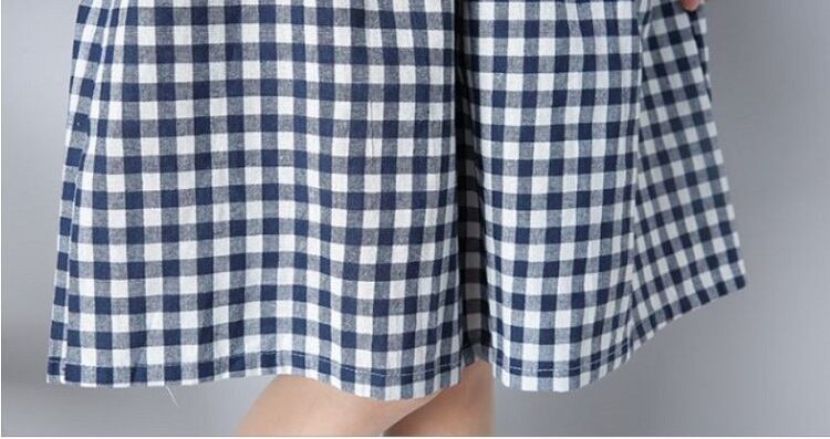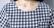 ギンガムチェックが可愛いひざ丈ワンピース。