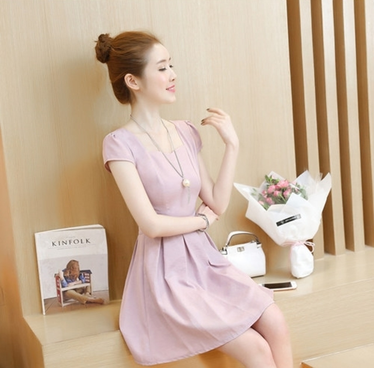 バックボタンがポイントなミニ丈ワンピース。