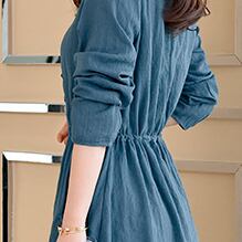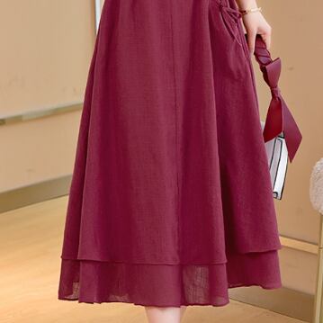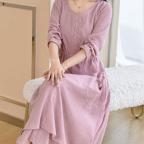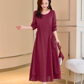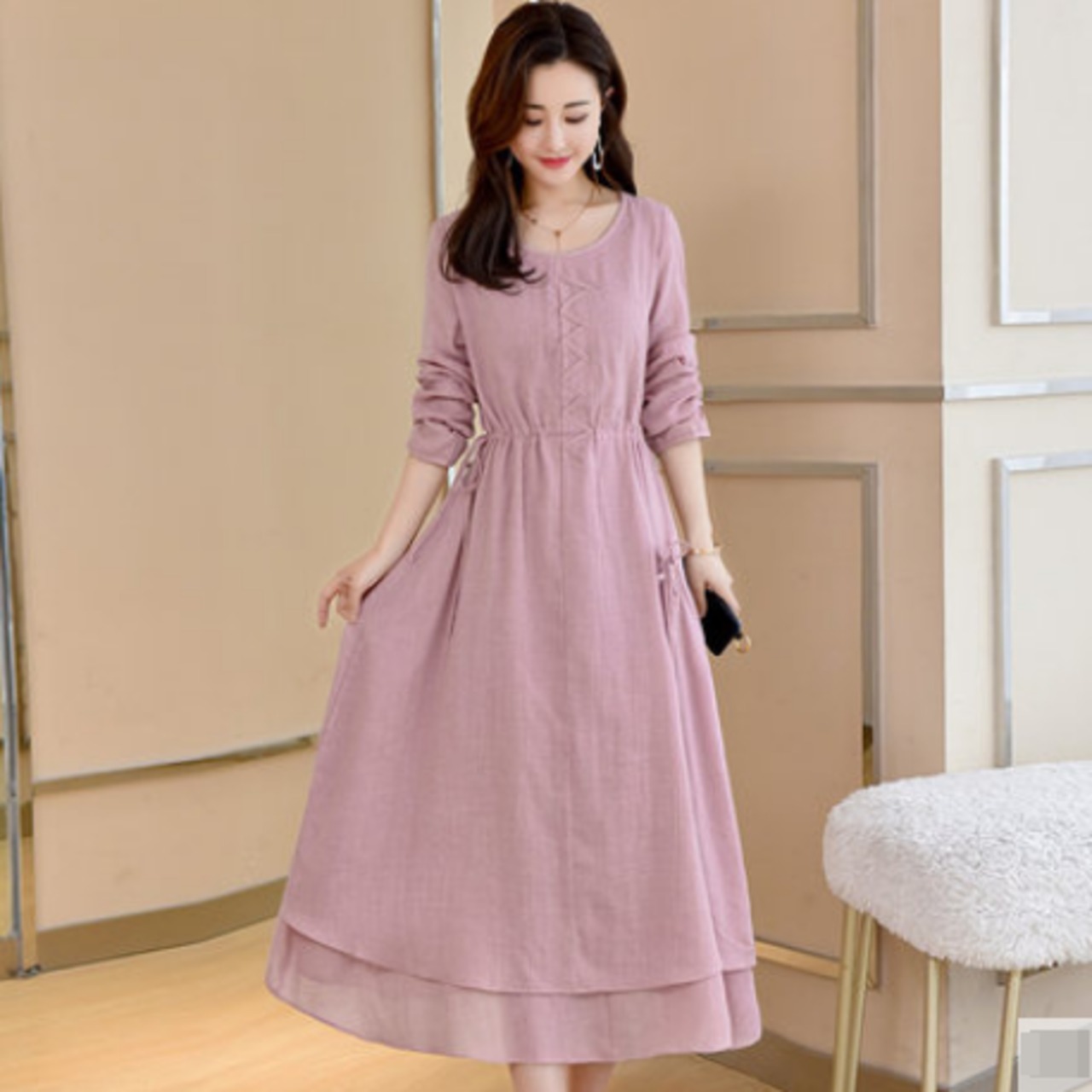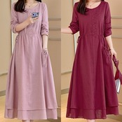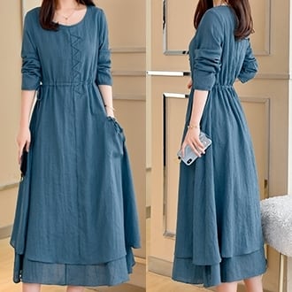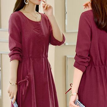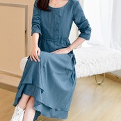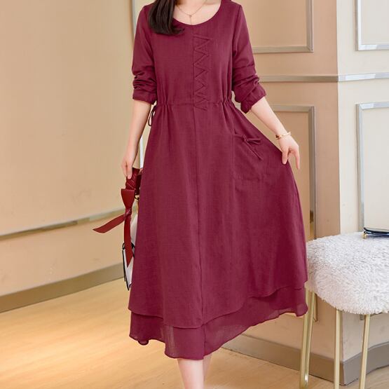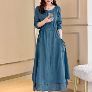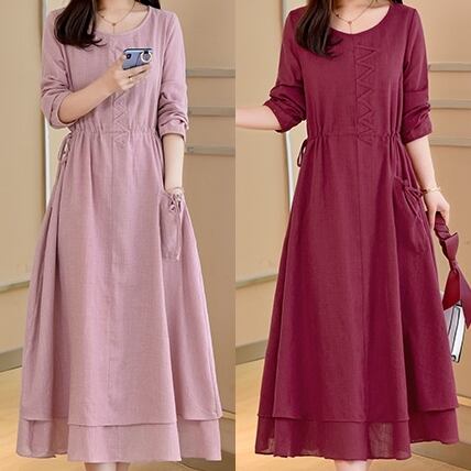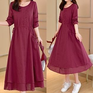 全3色 麻 綿 リネン コットン ワンピース Aライン 長袖 春 秋 ミモレ丈 大人かわいい カジュアル 上品 ハイウエスト ゆったり デート 人気 お出掛け デイリー 女子会