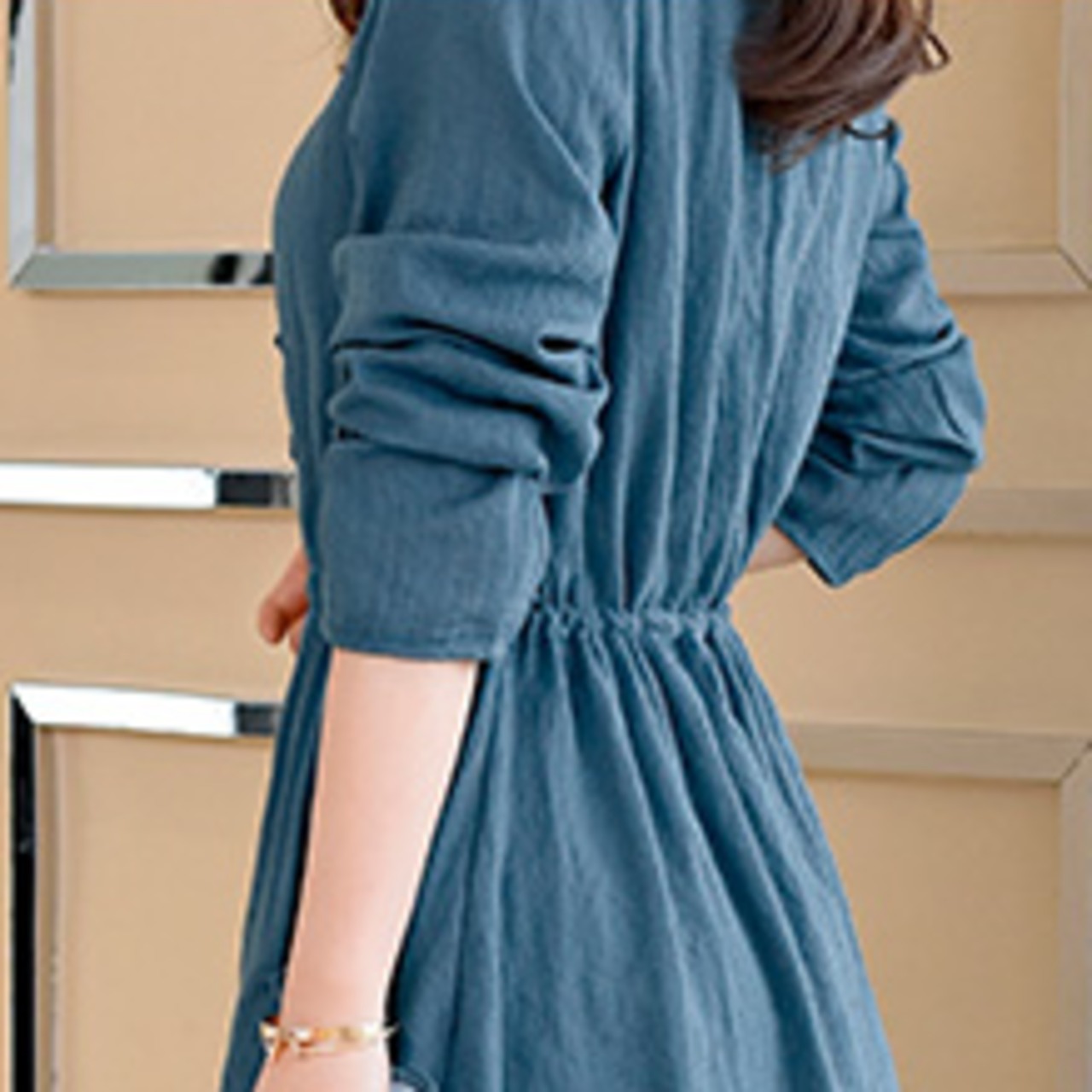 Aラインワンピースだからウエストすっきりな印象に。