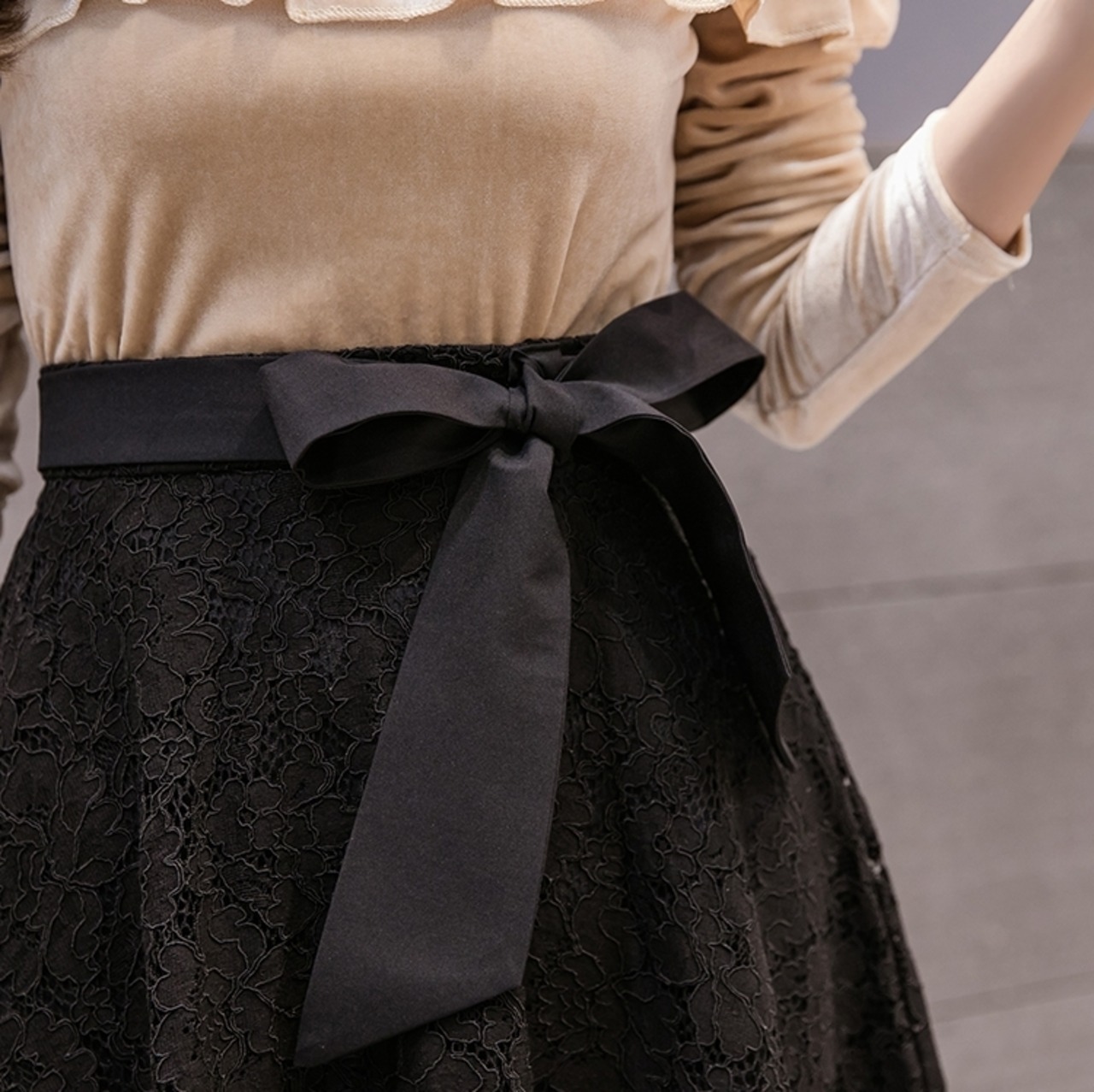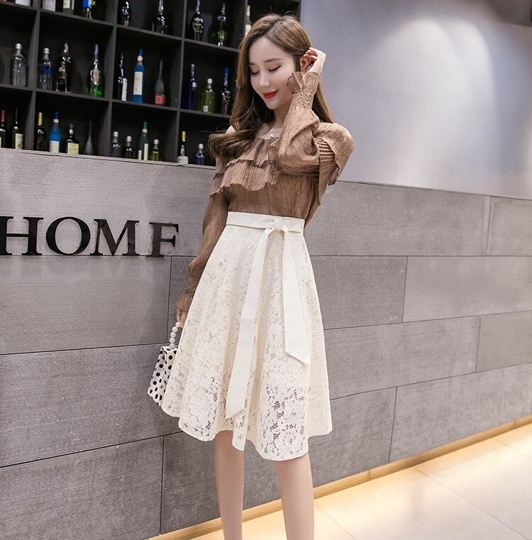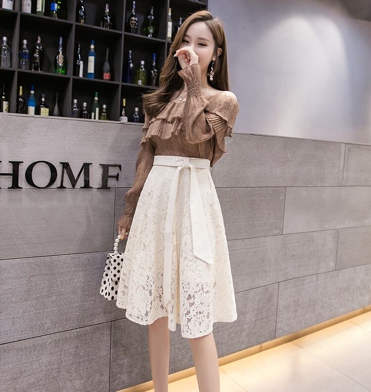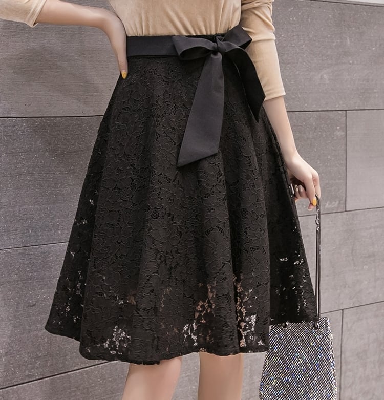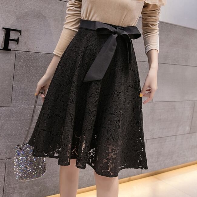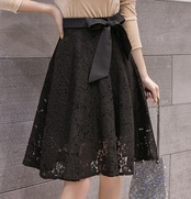 全2色 スカート ボトムス 花柄 レース フレアスカート ひざ丈 上品 ハイウエスト 大人 ウエストリボン お出かけ カジュアル きれいめ デート お呼ばれ 女子会 夏