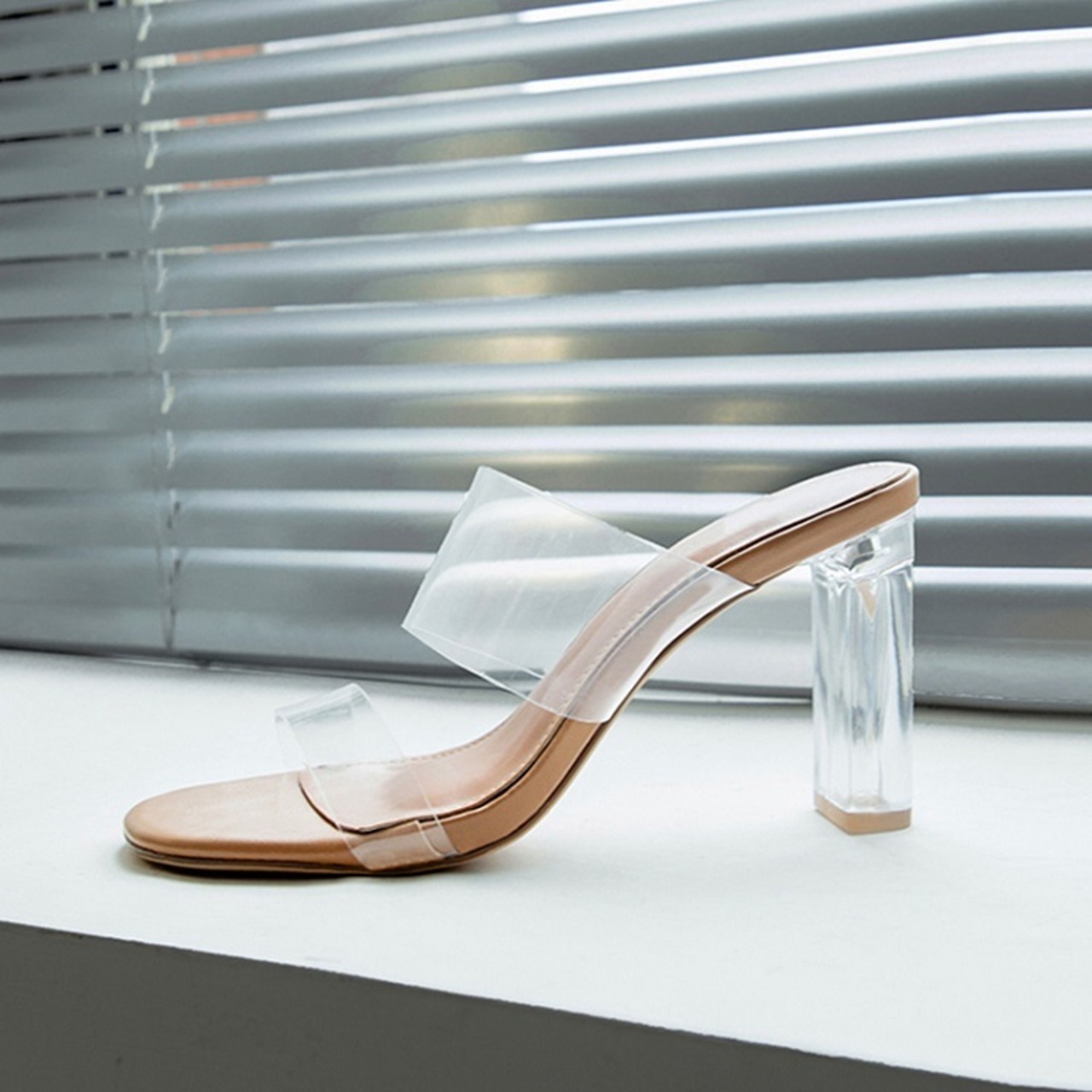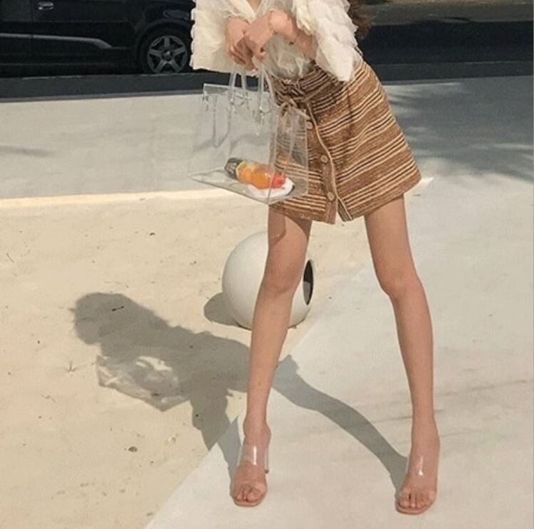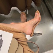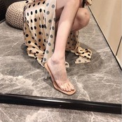 ヌーディな透け感がセクシーで夏らしいクリアサンダル。